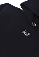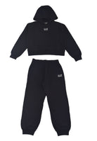 This refined, dynamic women's tracksuit from EA7 Armani includes a hoodie and joggers, crafted from soft, slightly stretchy organic cotton. This comfortable, breathable natural material has a velvety, caressing texture, designed for free, casual movement and features an excellent, snug, yet non-restrictive fit. The sweatshirt features long sleeves, a modern, essential design, and a contrasting logo on the chest, a symbol of style and identity, and an exclusive print on the back that adds an eye-catching graphic touch. The joggers complete the outfit with flowing, practical, and versatile lines, featuring functional side pockets and a contrasting logo that recalls the sweatshirt's branding, creating a coordinated visual harmony. Stretch cotton trim on the cuffs and waistband ensures a snug fit and durability, while the fabric structure ensures thermal comfort, flexibility, and lightness even during physical activity. This product is meticulously crafted down to the smallest details. Dry cleaning is not recommended. Tumble drying and the use of bleach are prohibited. Ironing at a low temperature (maximum 110°C) is recommended. Use gentle detergents to maintain color brilliance. Distributed exclusively by Bimbivip, a respected and reliable name in the e-commerce sector, synonymous with guaranteed reliability and attention to the needs of European families seeking safe, high-quality iconic garments.