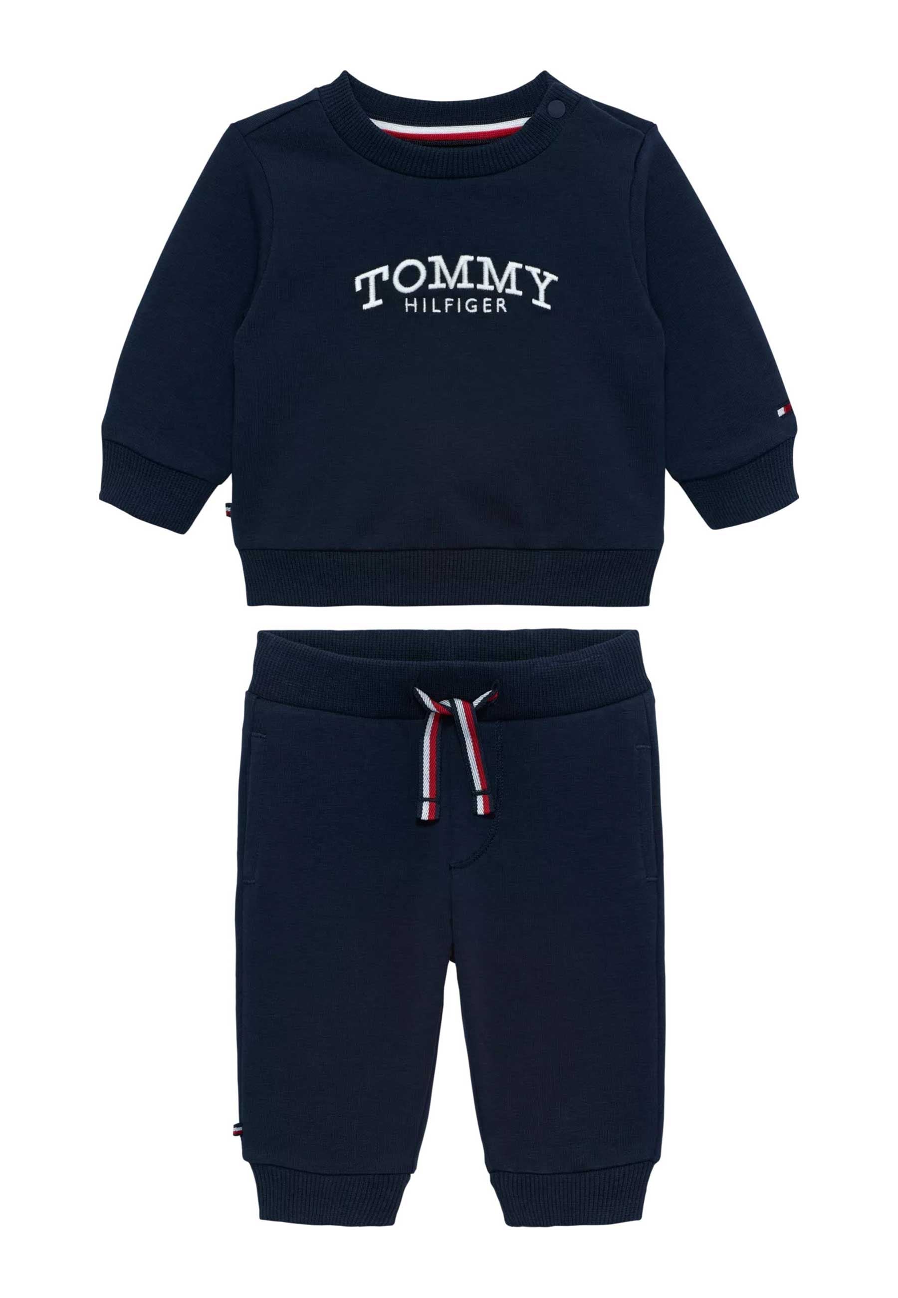Set Regalo lungo Tommy Hilfiger Junior proposto in esclusiva da Bimbivip partner storico affidabile e autorevole nel panorama europeo ecommerce e retail punto di riferimento per le famiglie che cercano qualità autenticità e marchi prestigiosi Bimbivip garantisce esperienza di acquisto sicura trasparente e gratificante con cura nella selezione e garanzia di originalità per uno shopping sereno e di valore La felpa girocollo in cotone garzato blu navy offre vestibilità pratica con bottoni automatici sullo scollo polsini e fondo elasticizzati e lettering ricamato a contrasto mentre i pantaloni coordinati presentano vita morbida polsini a coste e dettagli heritage rosso bianco blu Micro-flag ricamate aggiungono un tocco grafico ordinato perfetto per ogni occasione Casual sportiva raffinata e duratura Composizione 95% Cotone 5% Elastan Lavabile in lavatrice a 30° Disponibile con consegna in 24/48h per l’Italia