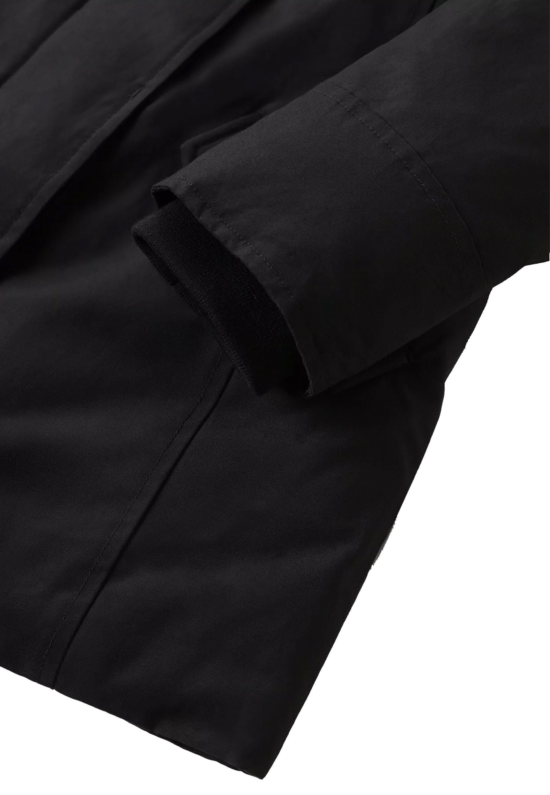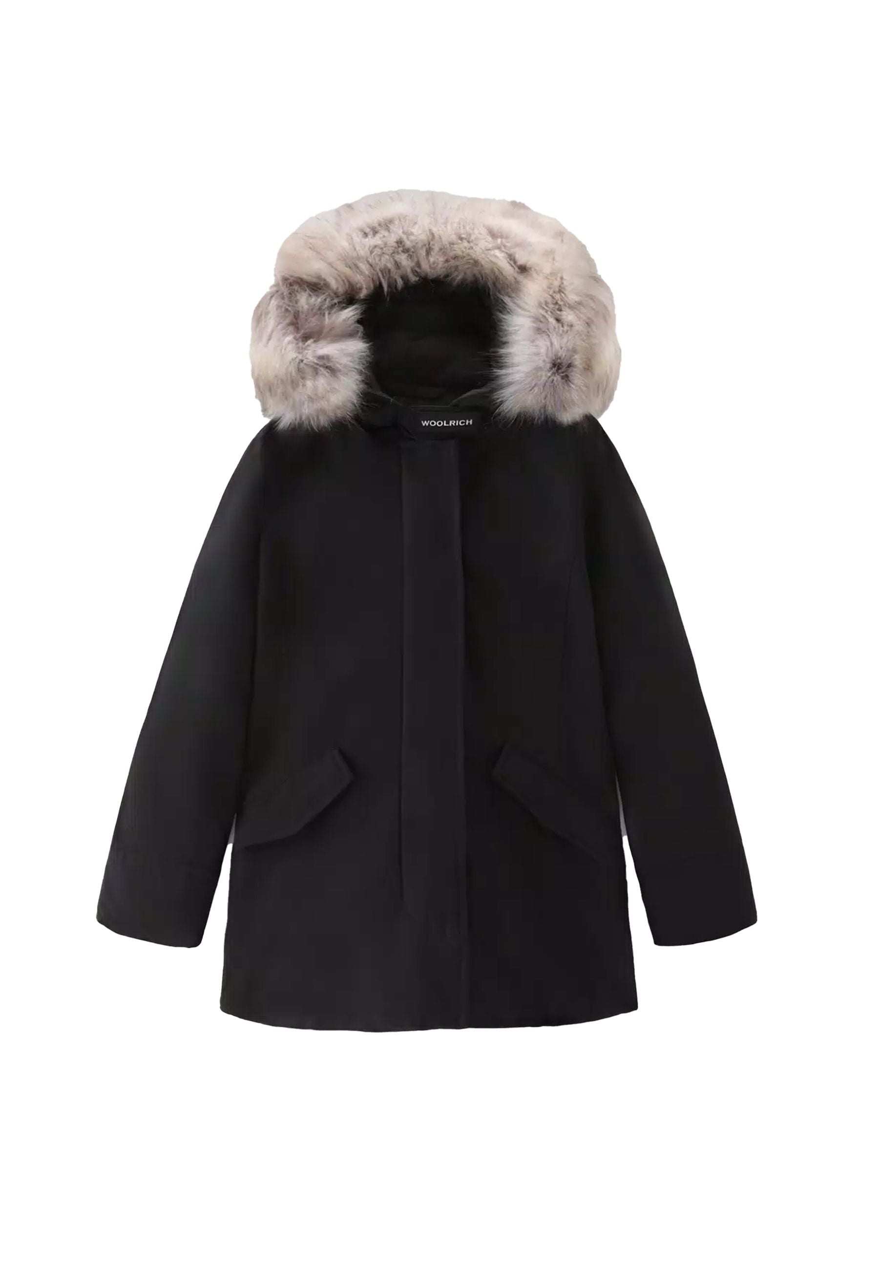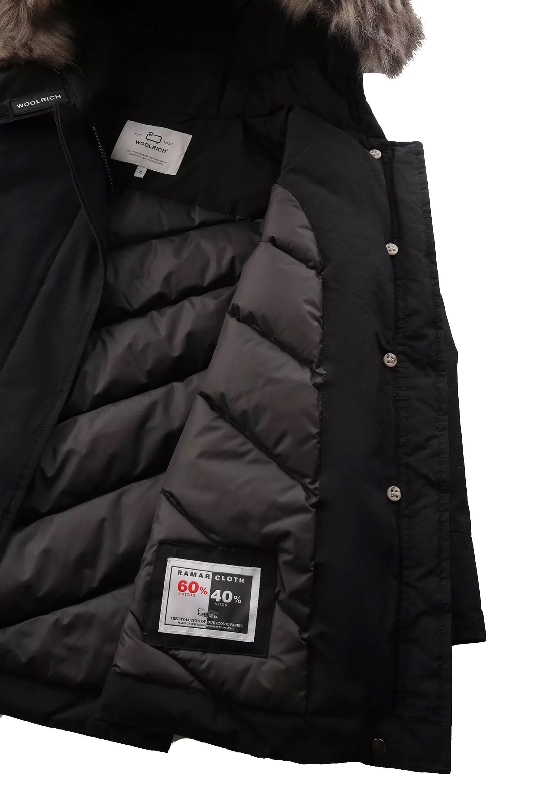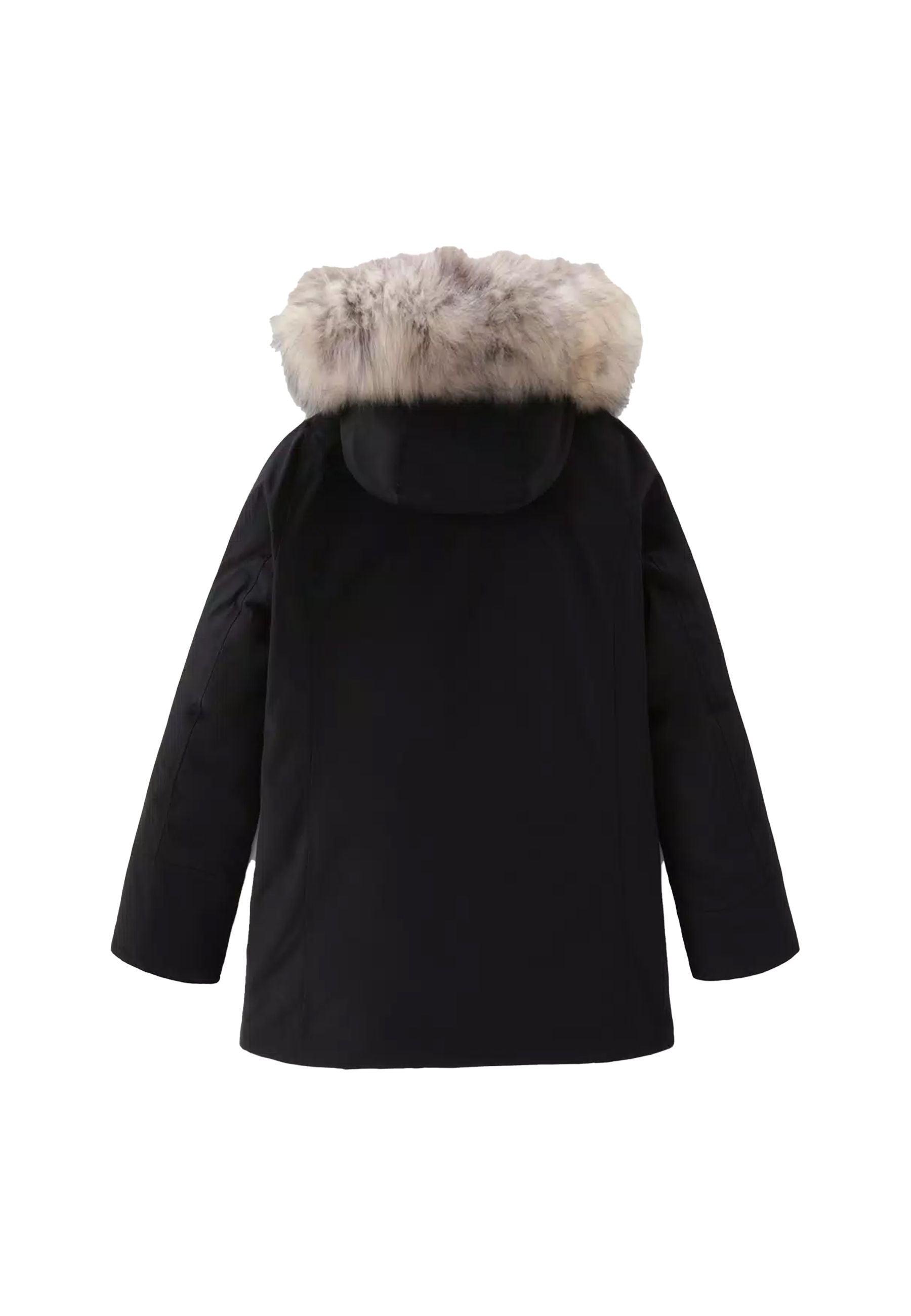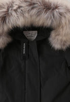 Down jacket in Ramar fabric with RDS certification, water-repellent, windproof, Teflon coated with 70/30 duck down padding. Concealed zip and press stud fastening. Protective hood with detachable fur insert. Diagonal pockets with flap. Ribbed inner cuffs. Side label
