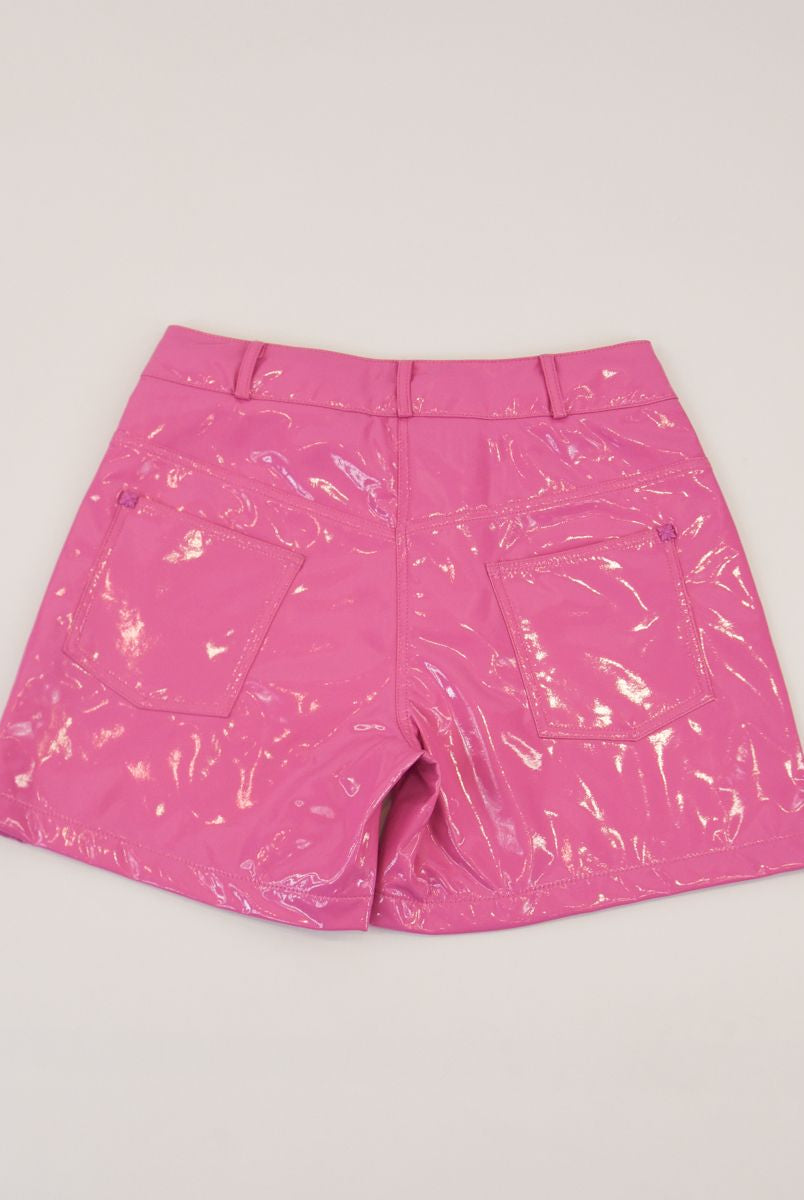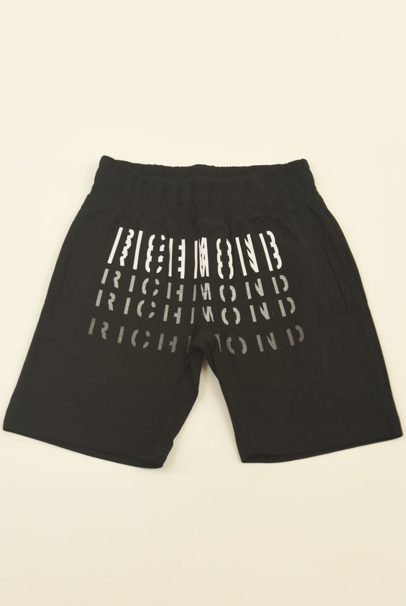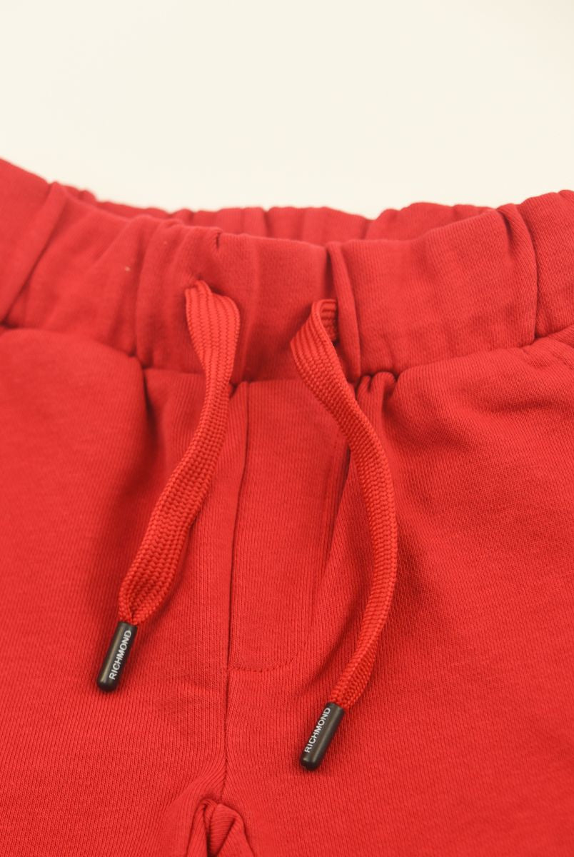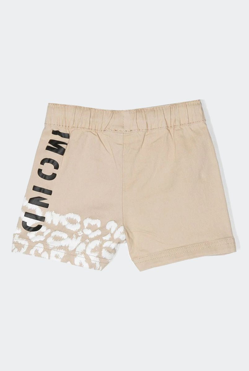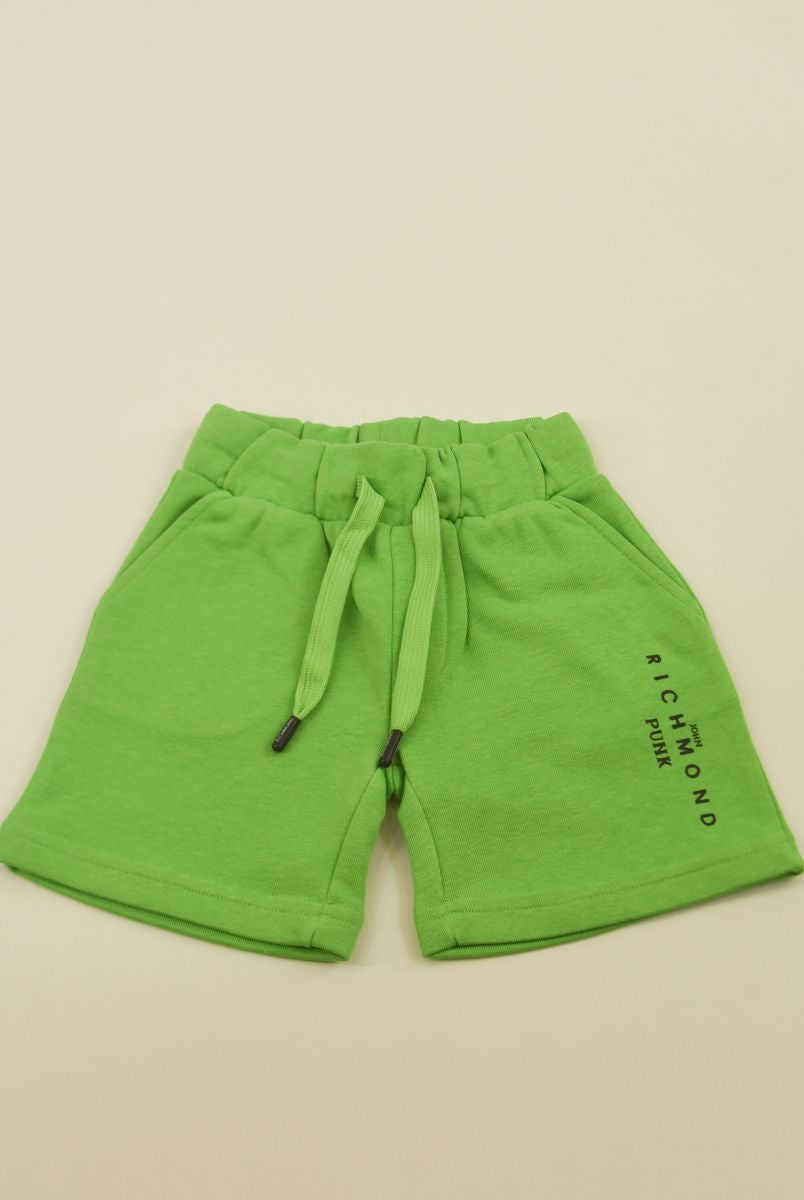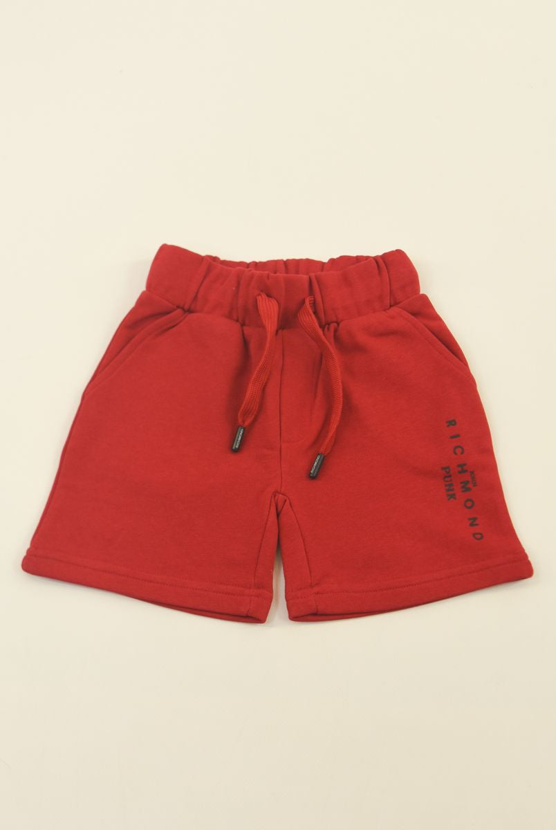 Solid color Bermuda shorts with front star print and welt and back pockets. Elasticated waist with adjustable drawstring