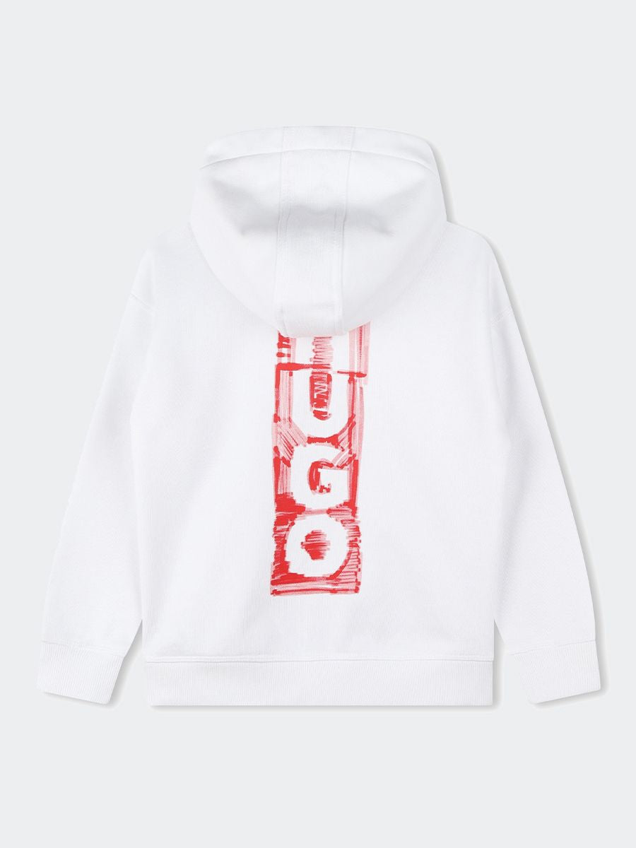Felpa Tinta unita con Cappuccio e Stampa verticale.marsupio sul davanti e fondo e Polsini a coste elastiche