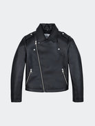 Plain jacket in eco-leather with regular fit and diagonal zip fastening. Pointed collar with zip pockets at the waist repeated on the cuffs. Monogram logo on the chest and detail on the shoulder straps with snap buttons