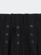Midi skirt in viscose. Zip front and back with eyelets. Branded label on the side with effect
