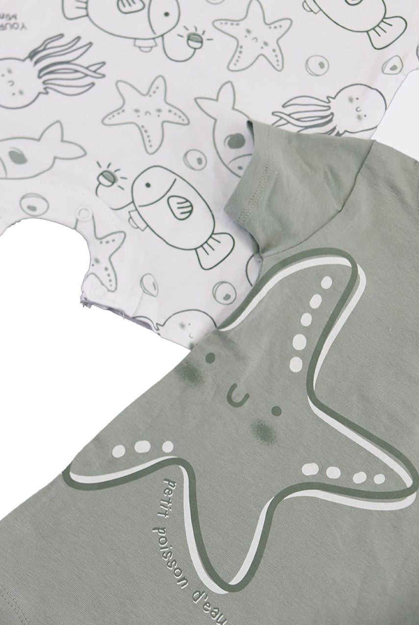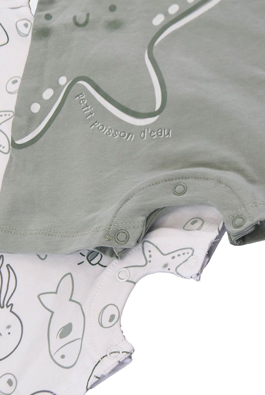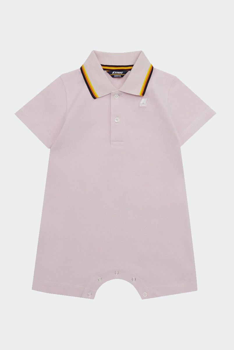 Crewneck romper in short-sleeved fleece with heart print on the bottom