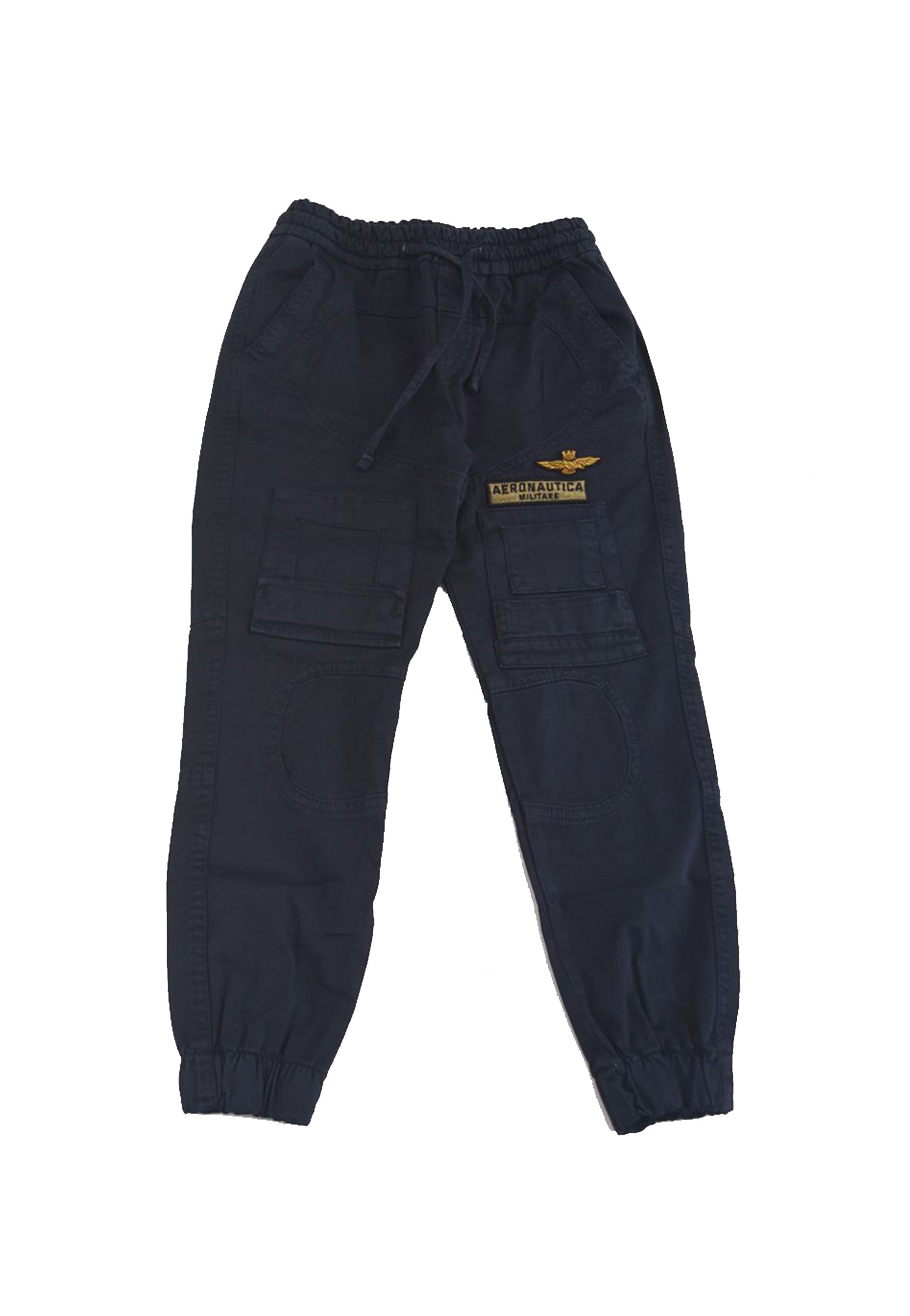 Pantalone in gabardine con tasca america e tasconi laterali ANTI-G ed elastico al fondo. ricamo AM