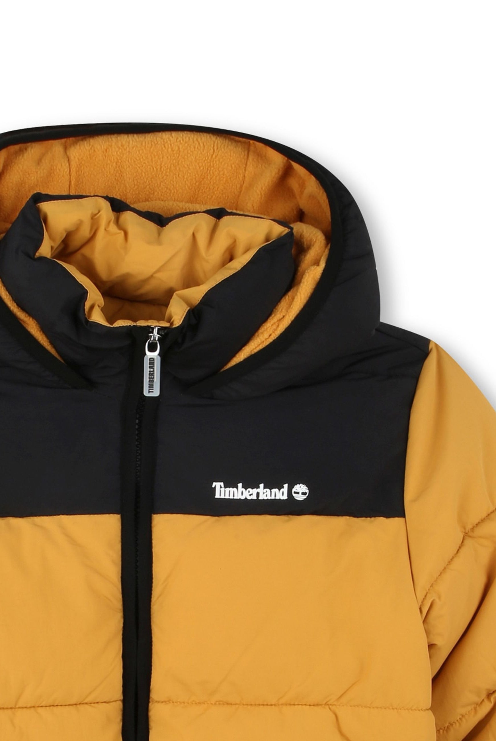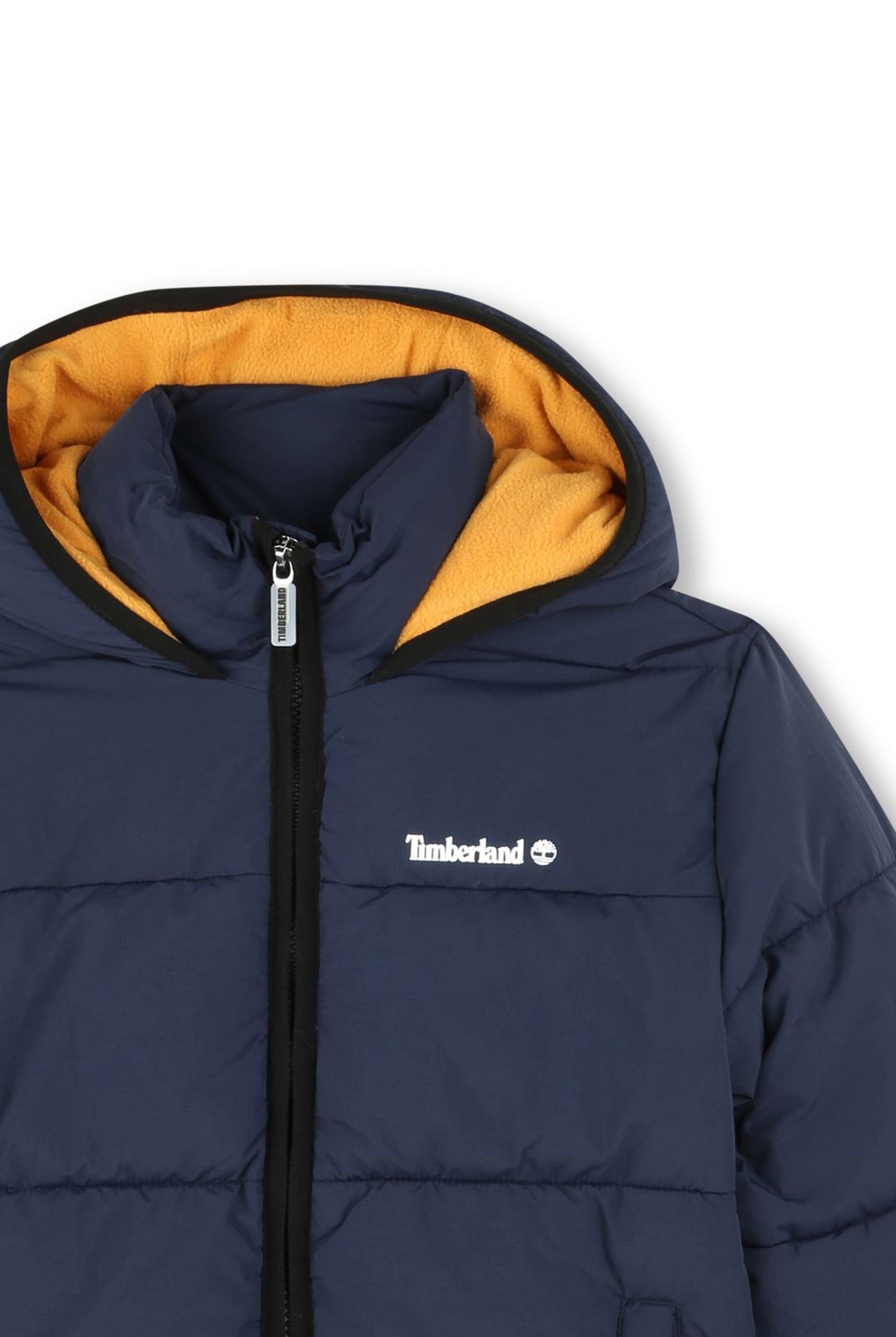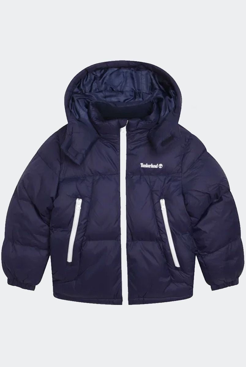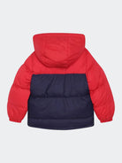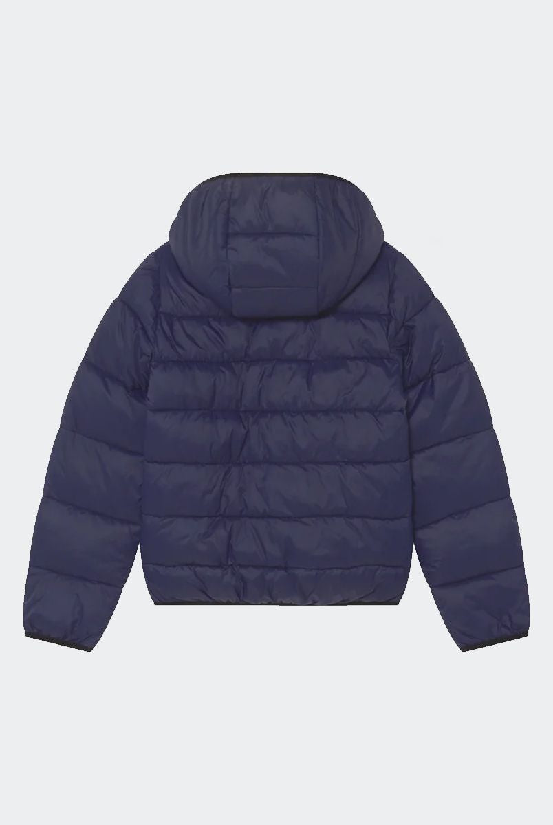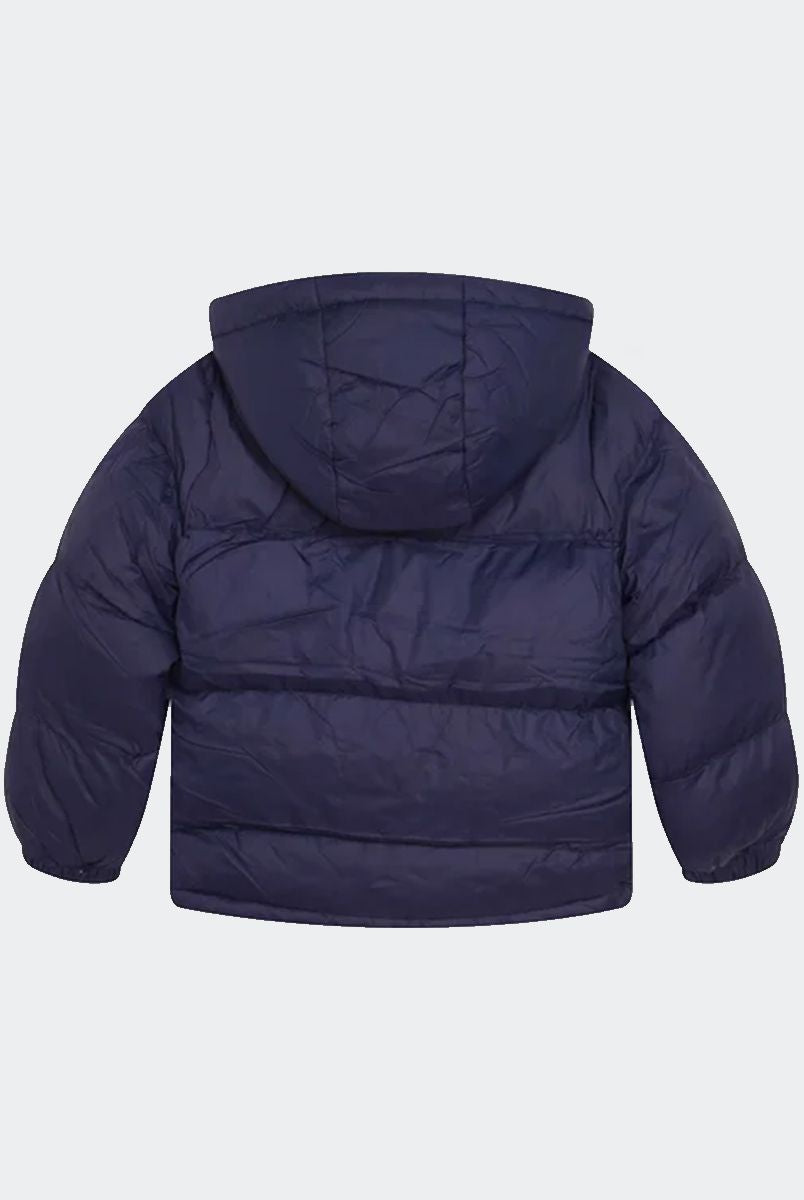 Padded down jacket with hood. Zip closure. Front pockets with zip. Fleece-lined inner collar. Cuffs on the bottom of the sleeve. Logo printed on the heart side