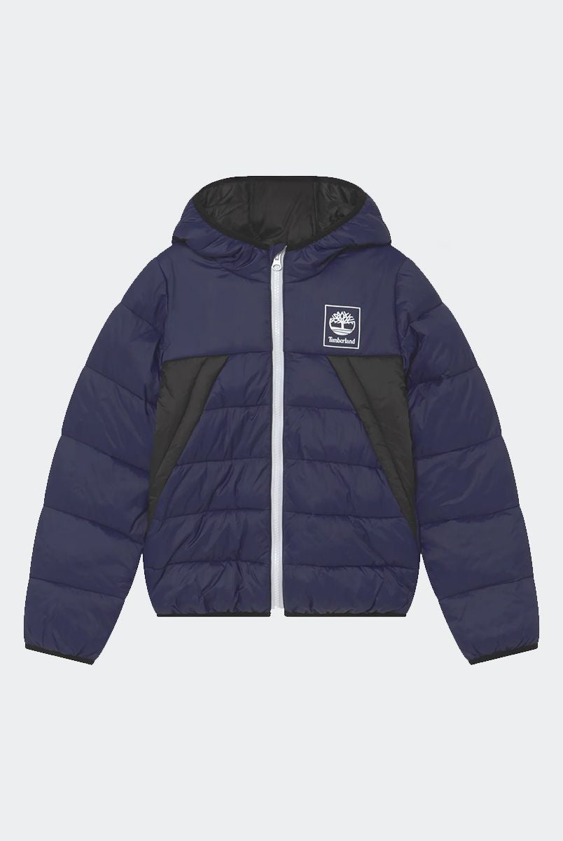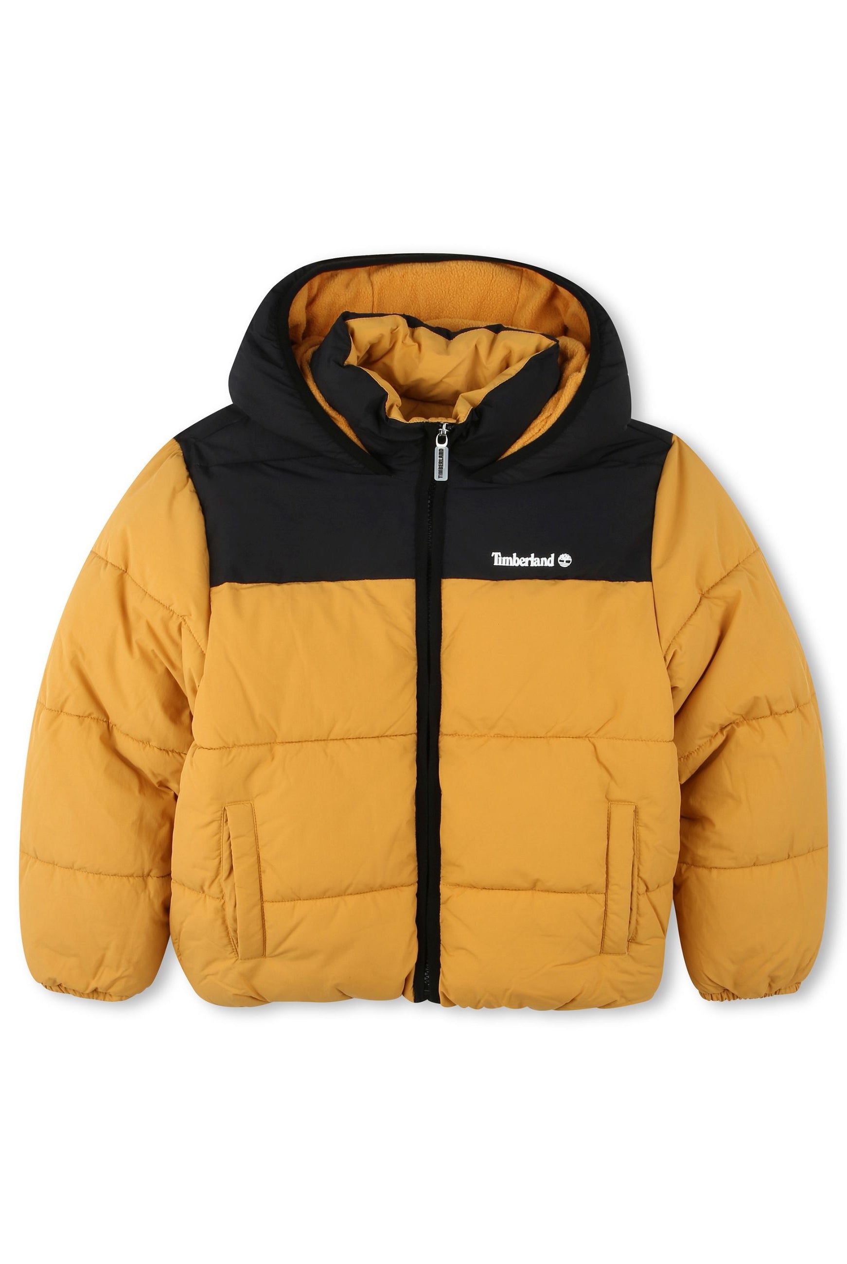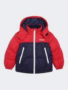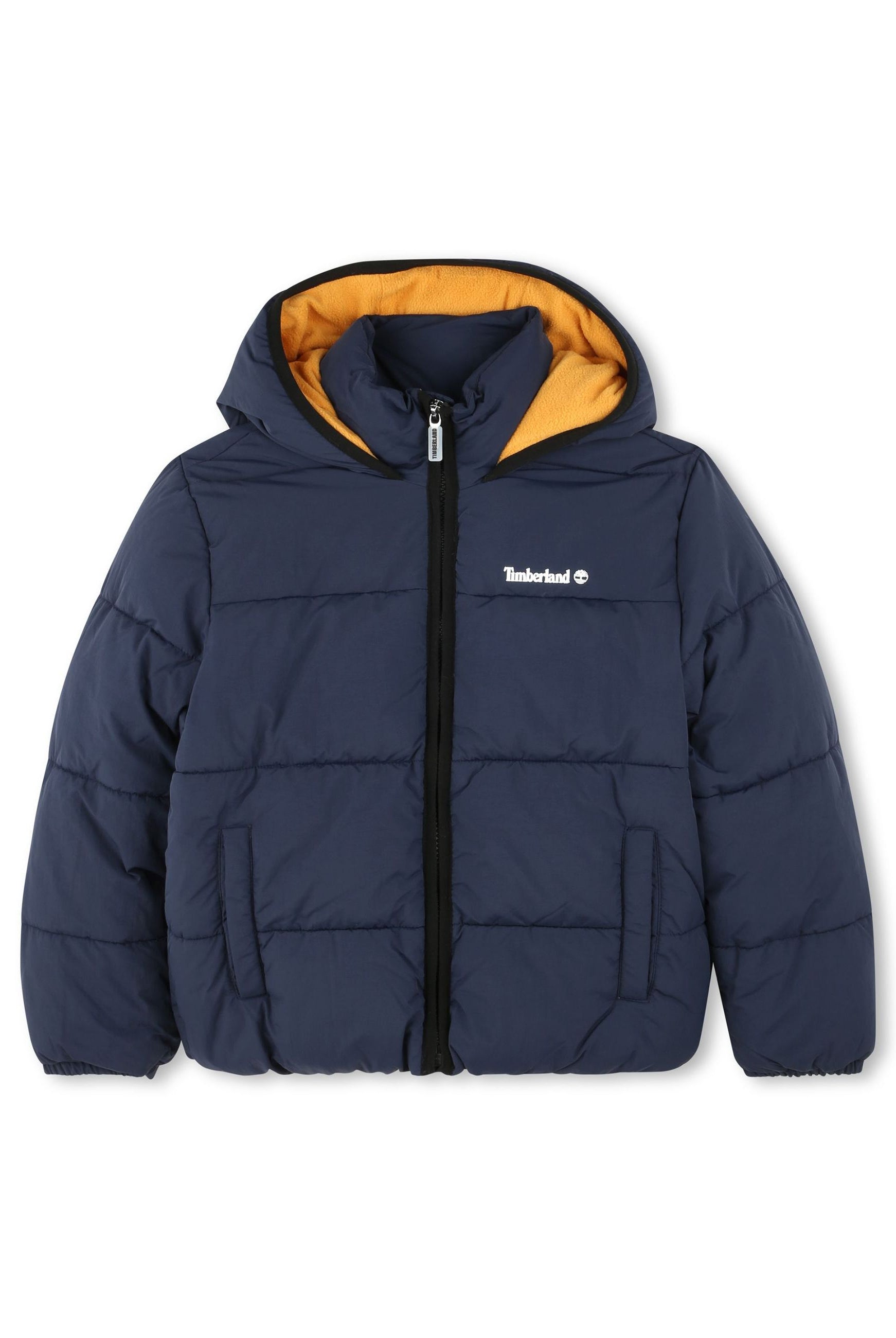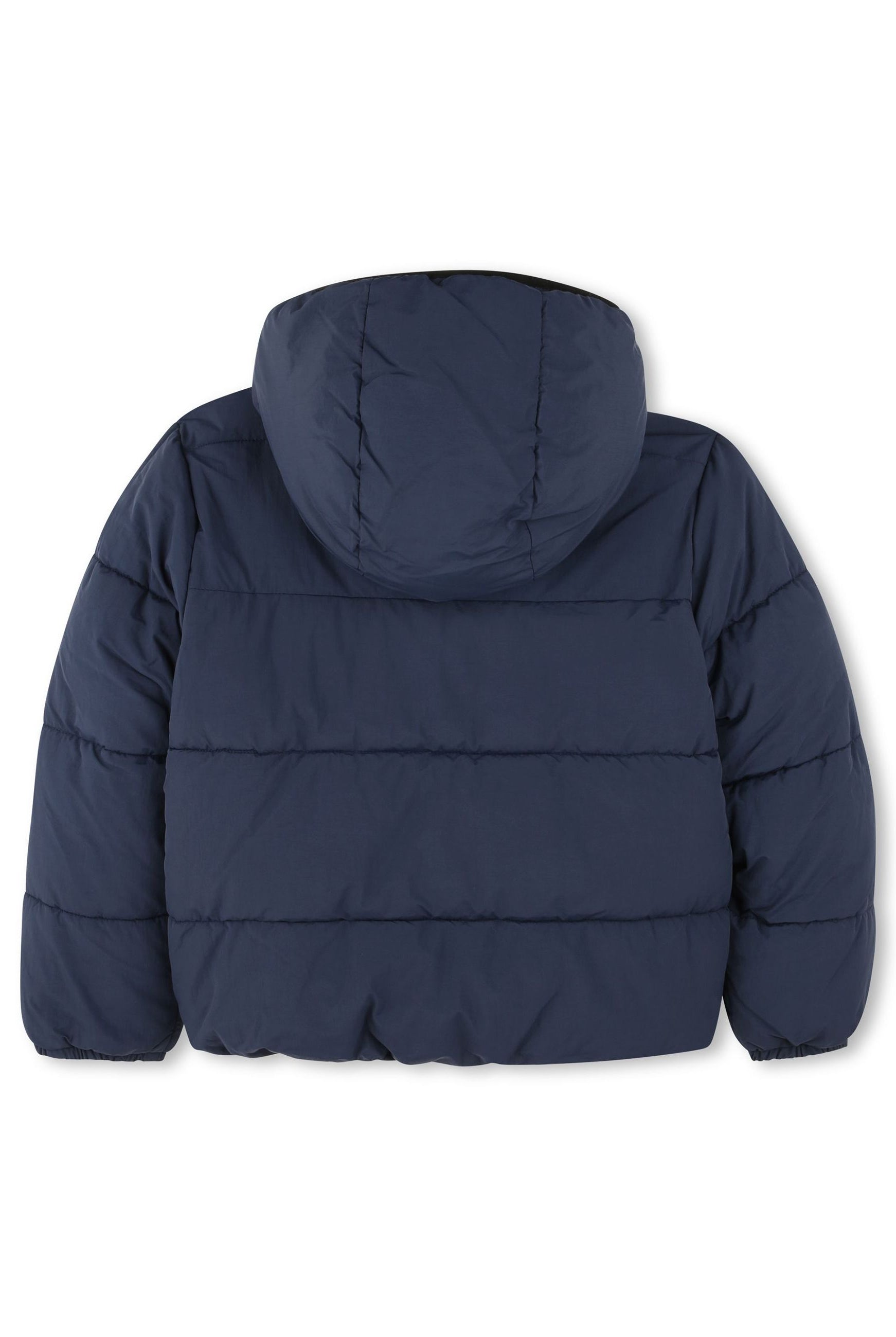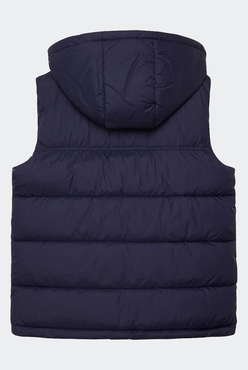Padded down jacket with hood. Zip closure. Front pockets with zip. Fleece-lined inner collar. Cuffs on the bottom of the sleeve. Logo printed on the heart side