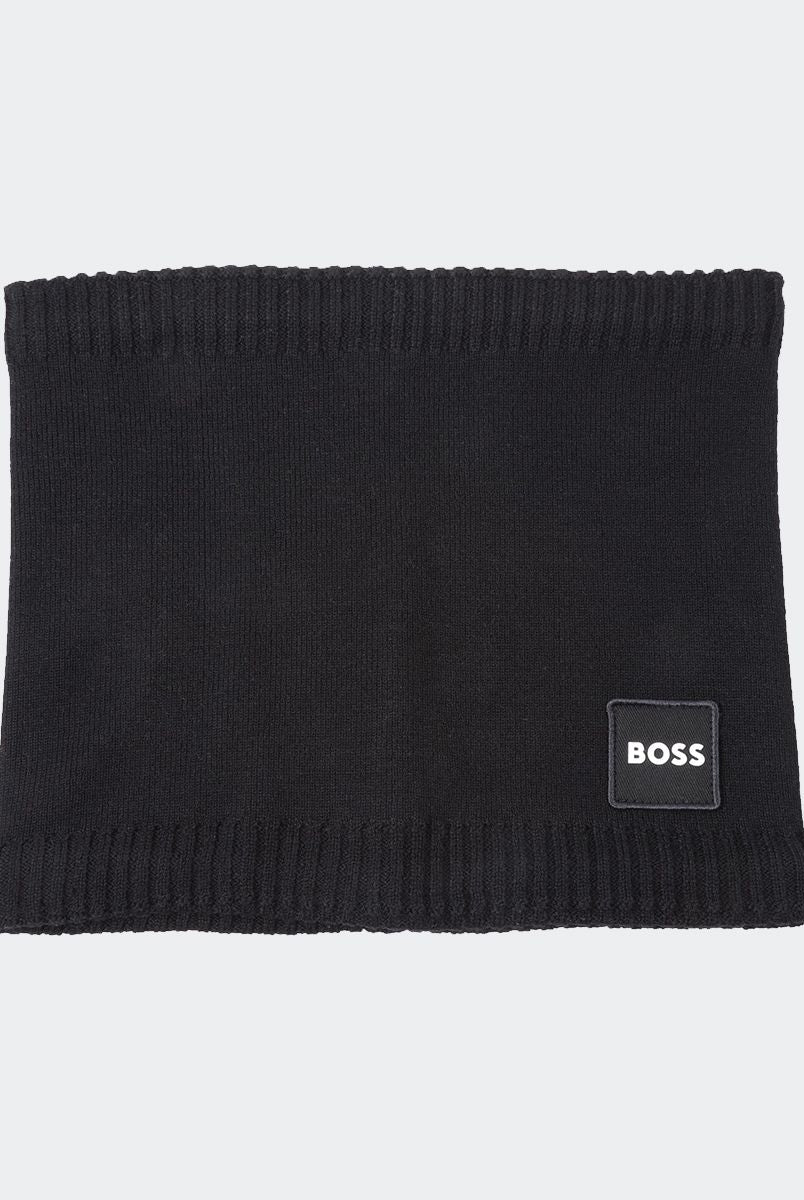 Solid color neck warmer with fabric logo patch. Fits head circumference from 52 cm to 54 cm
