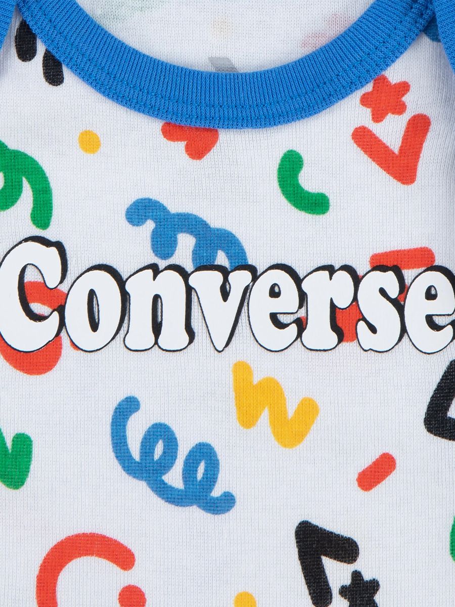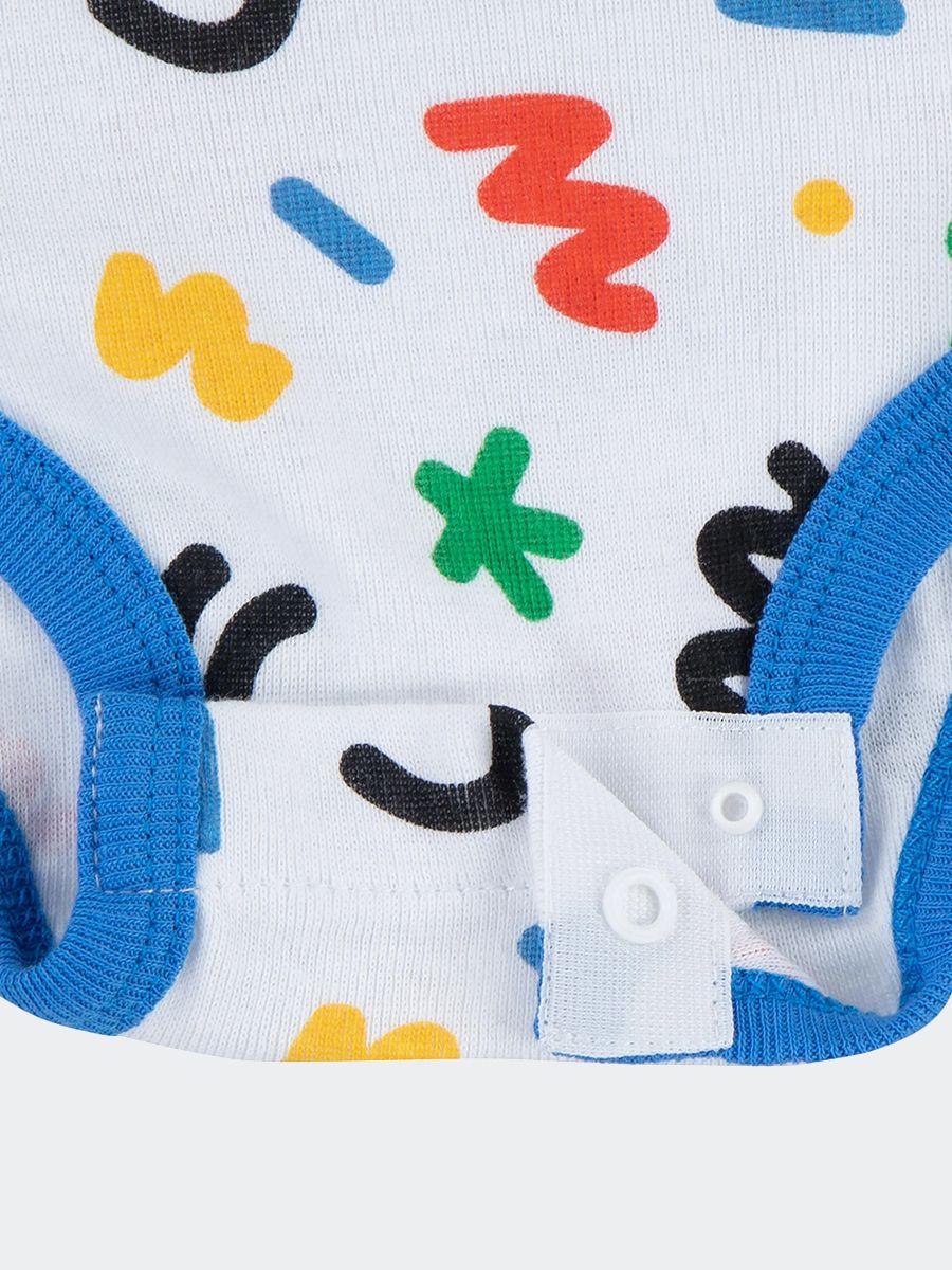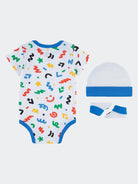 Gift Set consisting of Short-sleeved Bodysuit, Slippers and Multi-coloured Patterned Hat with Logo Print