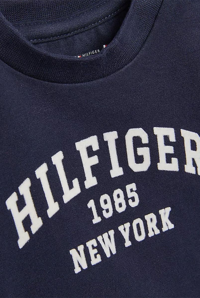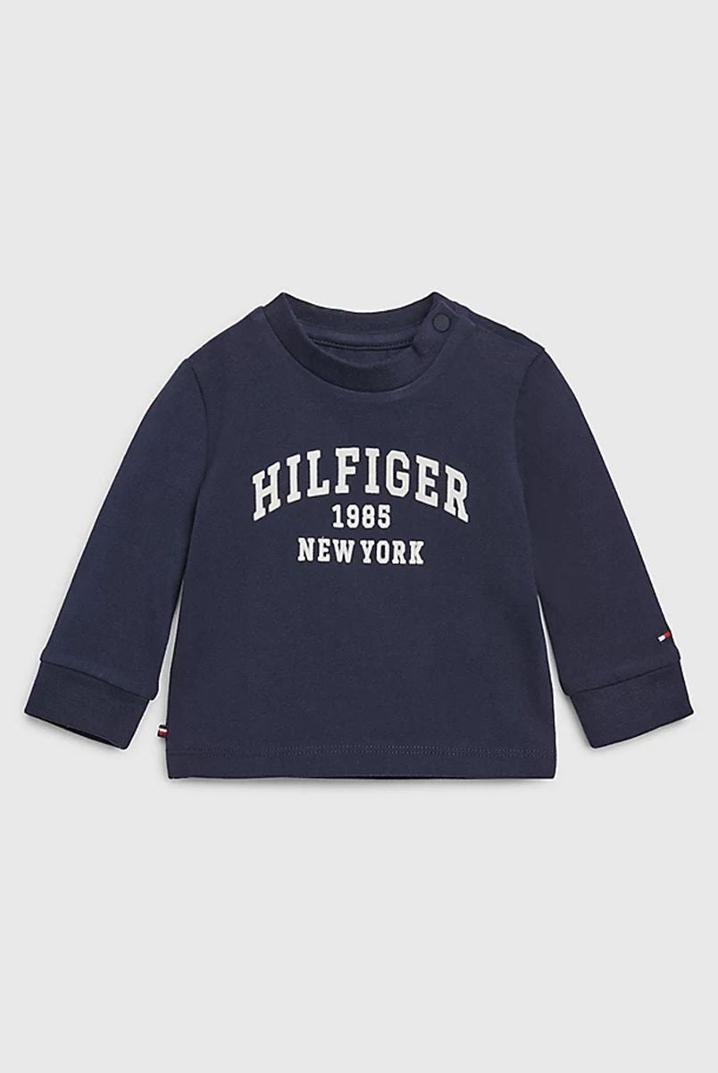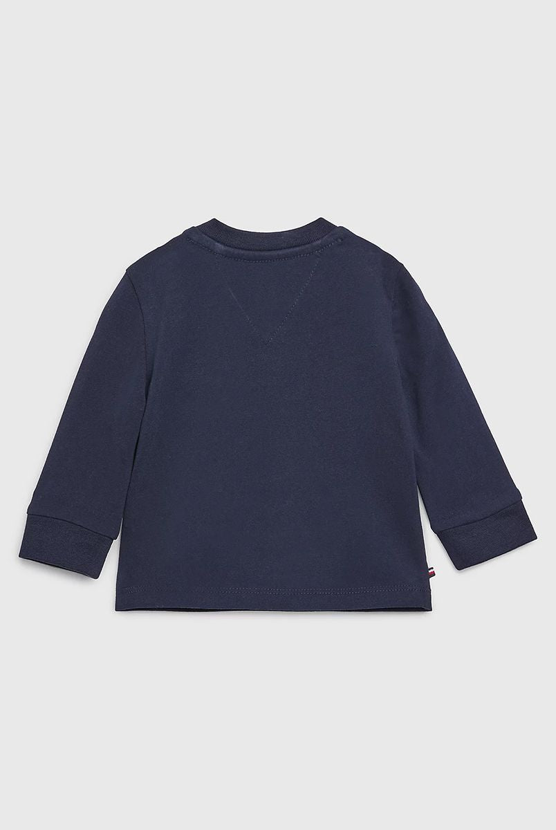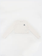 Crew neck long sleeve T-shirt with embroidered logo on the heart side and Voila stitched bottom. Made with matching vertical stripes.