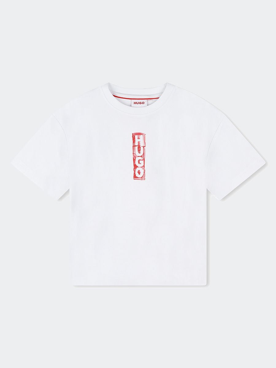 T-shirt girocollo manica corta tinta unita con stampa frontale verticale