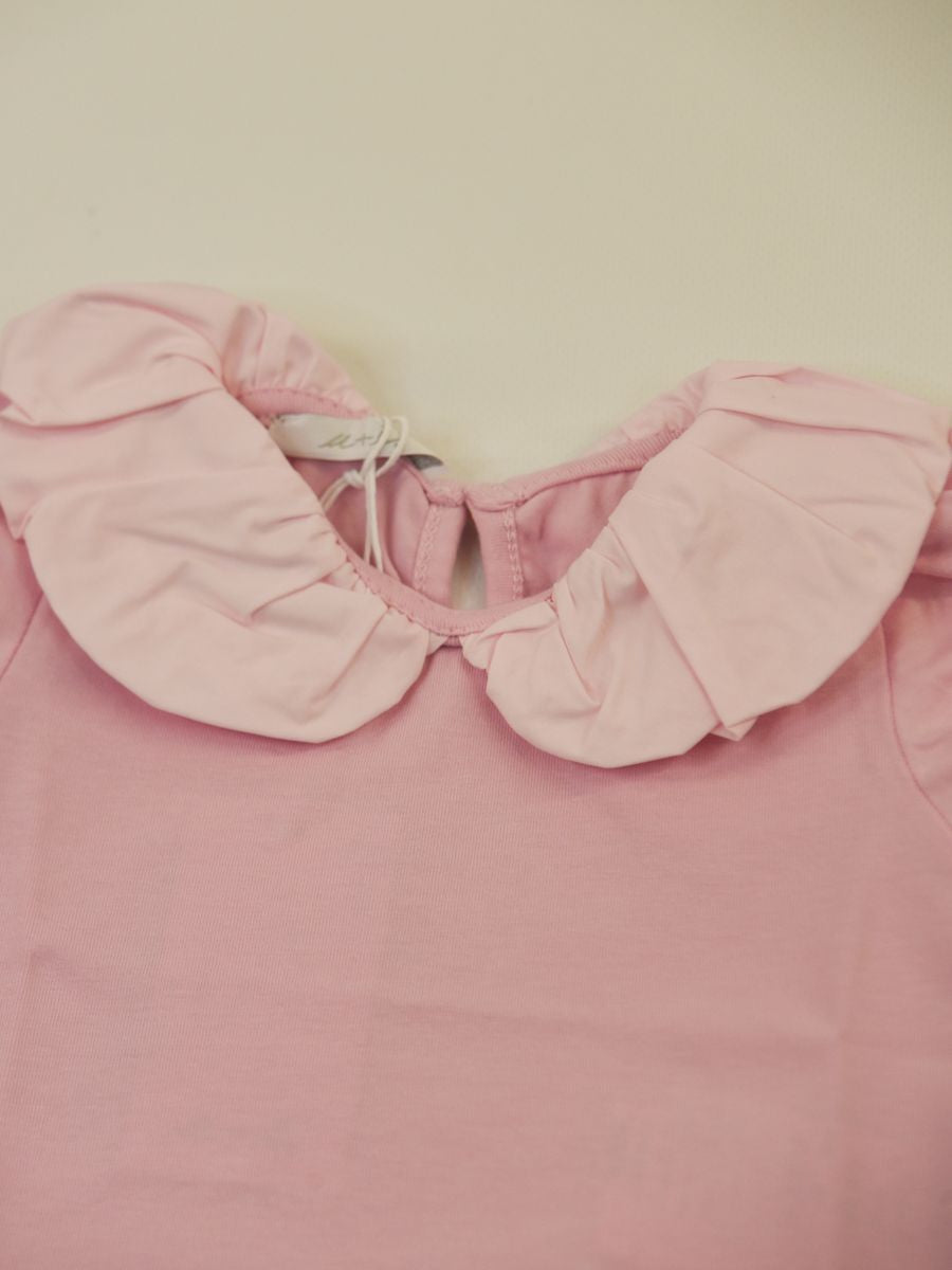 T-shirt tinta unita con Collo largo manica corta con elastico. Taglio dritto