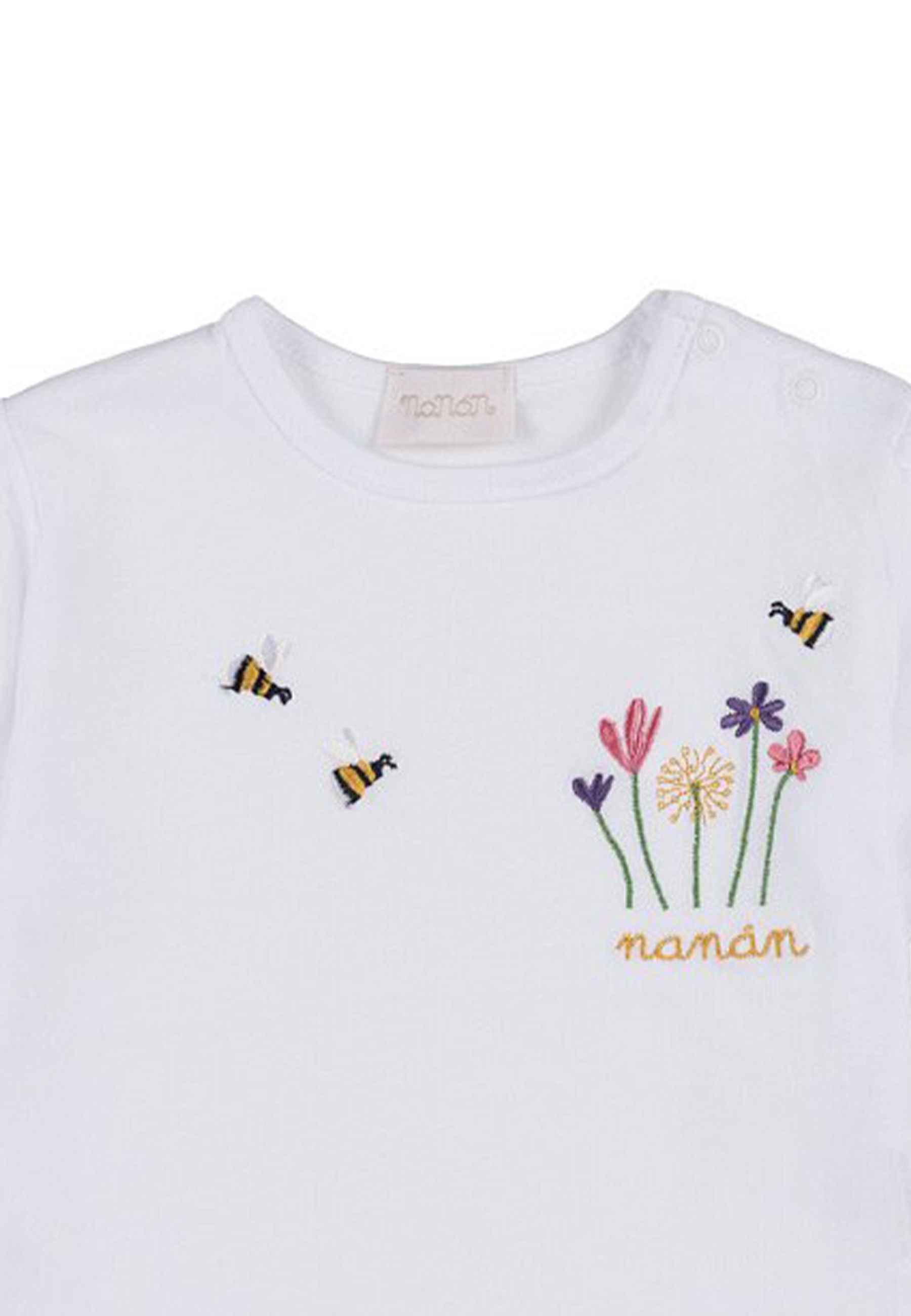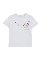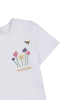 T-shirt Graziosa t-shirt impreziosita da un dolce ricamo con fiorellini e api. Perfetto per accompagnare la tua bambina nelle sue giornate estive.