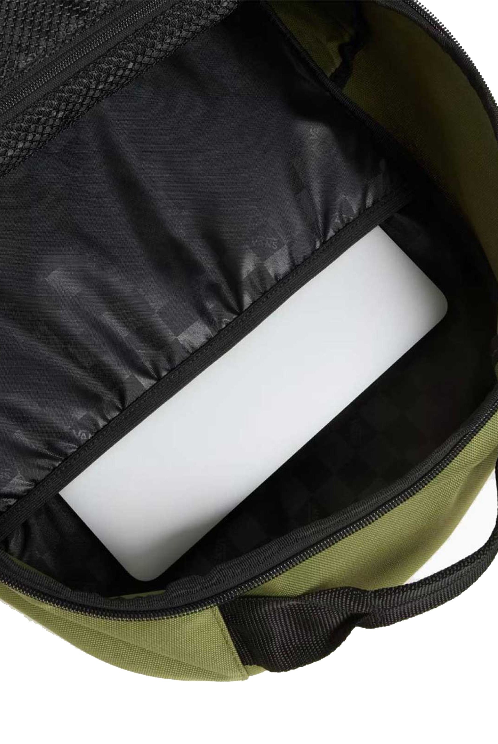 Zaino dalla struttura compatta dal profilo essenziale e dall’estetica sportiva capace di fondere funzionalità e stile con disinvoltura raffinata capienza generosa di 22 litri distribuita in modo intelligente grazie a un design ben calibrato misura 16 5/8 x 12 3/4 x 4 3/4 si presenta solido e resistente pratico e versatile adatto a ogni occasione quotidiana grazie al tascone principale dotato di scomparto imbottito per laptop fino a 15 pollici soluzione ideale per studenti lavoratori o spiriti urbani sempre in movimento.La presenza di una tasca frontale con organizer lo rende ordinato e accessibile mentre la tasca laterale per la borraccia dimostra una sensibilità moderna verso le esigenze contemporanee gli spallacci ergonomici e imbottiti assicurano un comfort durevole anche durante gli spostamenti più intensi rendendolo simile a un alleato discreto ma instancabile.Distribuito con cura da Bimbivip realtà affidabile e stimata nella galassia e-commerce europea emblema di qualità selezione e attenzione verso il cliente questo articolo riflette la filosofia Vans fatta di identità giovanile creatività urbana e cura del dettaglio un compagno fedele per chi cerca personalità praticità e sicurezza in un solo gesto quotidiano.