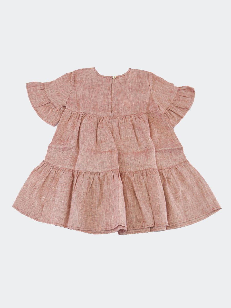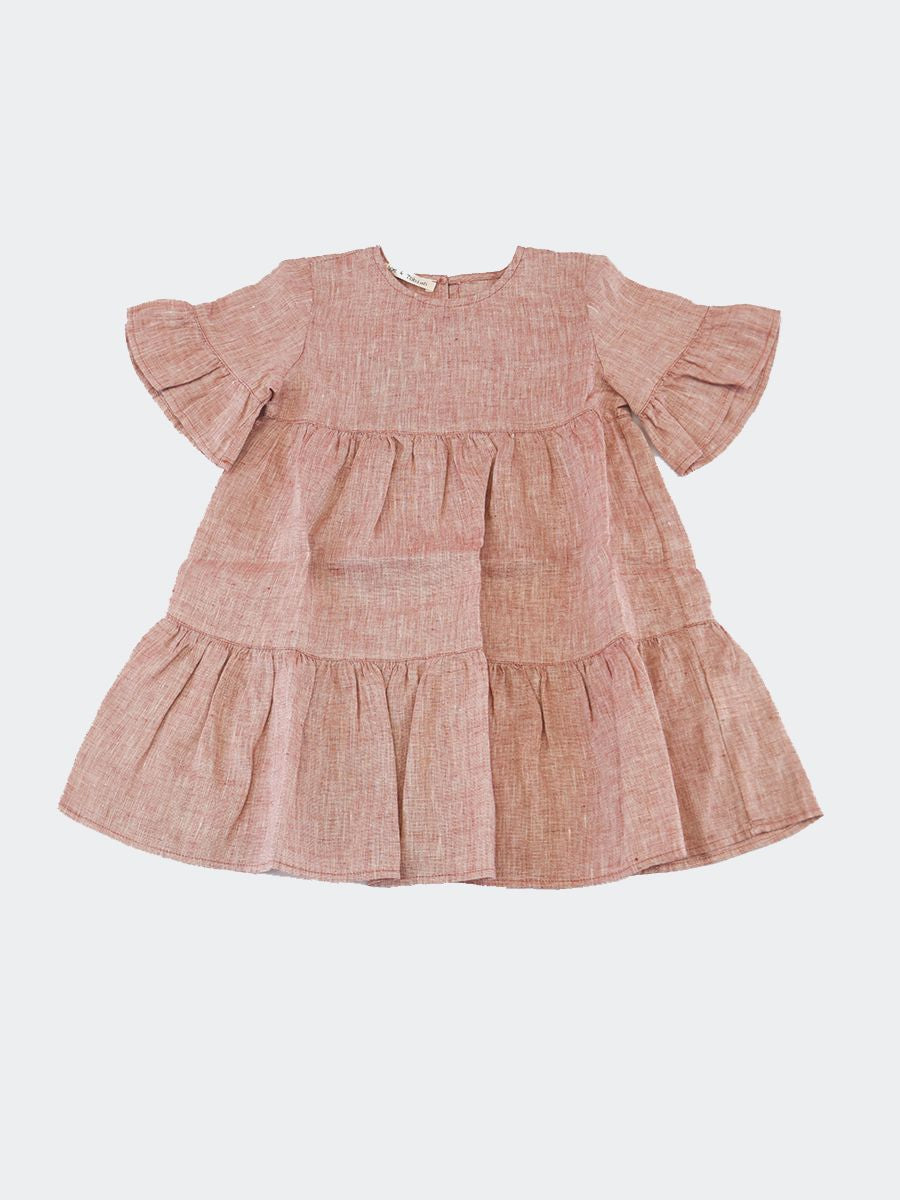 Abito girocollo manica corta a voilà. Collo tondo con bottone nel retro sottoposto ad un particolare trattamento. Le tinture artigianali rendono l'articolo unico. Ogni particolarità dei tessuti di Zhoe e Tobiah è da ritenersi un valore aggiunto per rendere unico il bimbo o la bimba che lo indossa