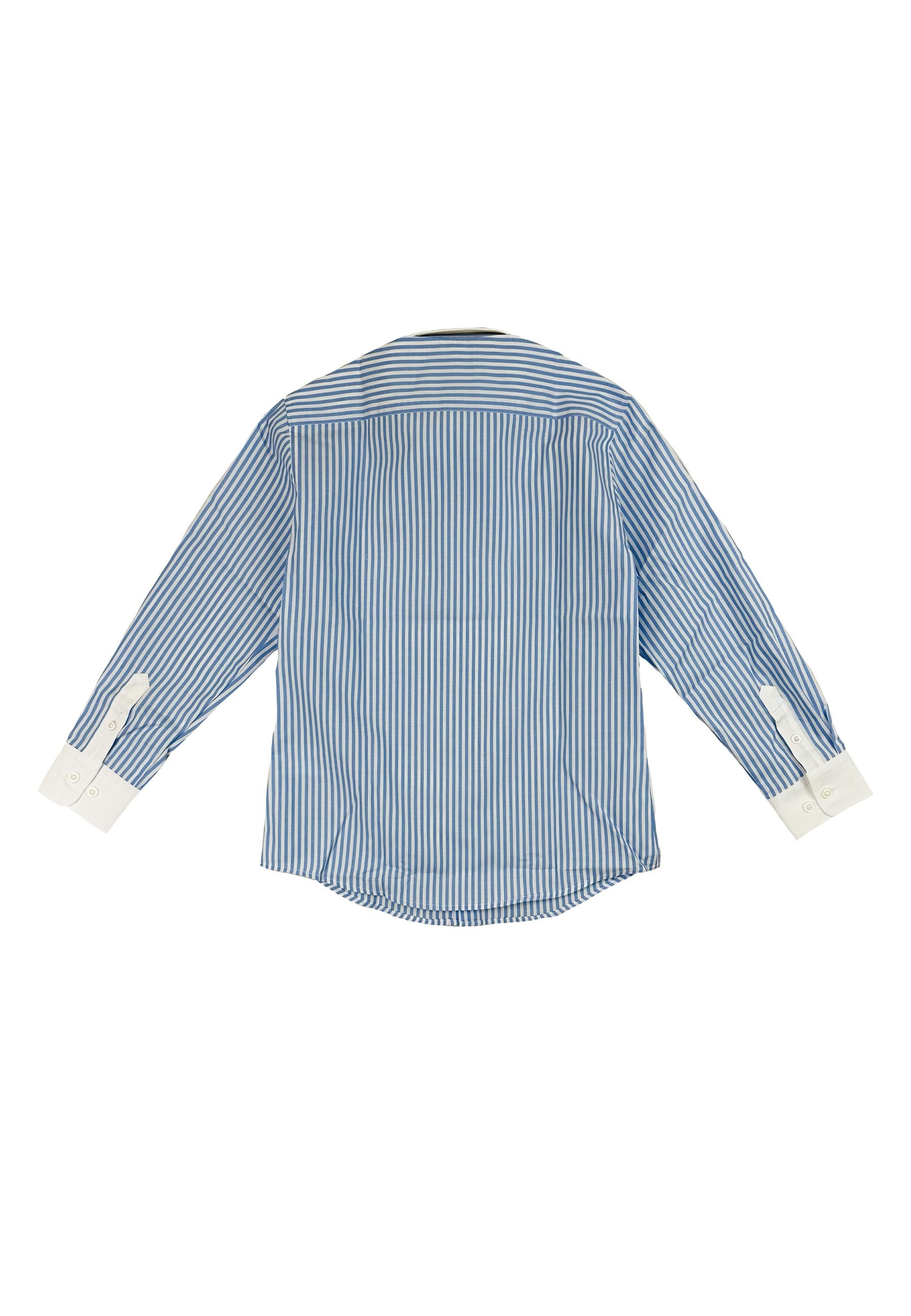 Camicia bambini manica lunga a fantasia rigata su fondo bianco con ricamo lato cuore frontale del brand Conte of Florence. collo e polsi tinta unita di colore bianco. Tessuto in puro cotone che assicura morbidezza comfort e resistenza design essenziale e raffinato con lettering che dona carattere e personalità ideale per i piccoli e ragazzi che amano distinguersi con stile e originalità capo esclusivo che arricchisce il guardaroba infantile e junior con eleganza e unicità distribuito da Bimbivip realtà storica affidabile e riconosciuta nel panorama europeo dell’ecommerce e del retail punto di riferimento per famiglie che desiderano qualità autenticità e sicurezza in ogni acquisto