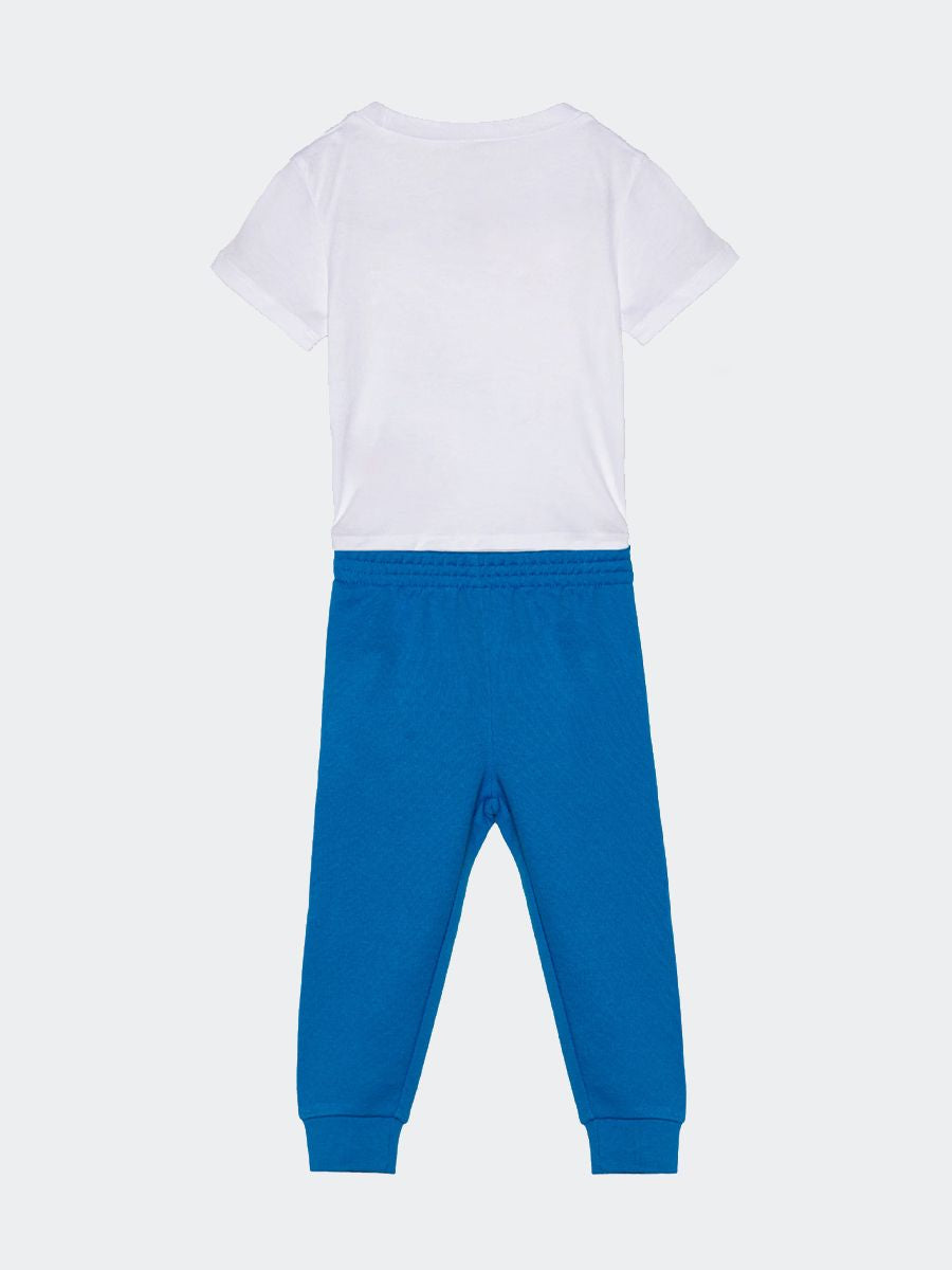 Completo Sportivo composto da t-shirt girocollo maica lunga con Stampa Logo e pantalone in felpa pesante con girovita regolabile e caviglie con elastico