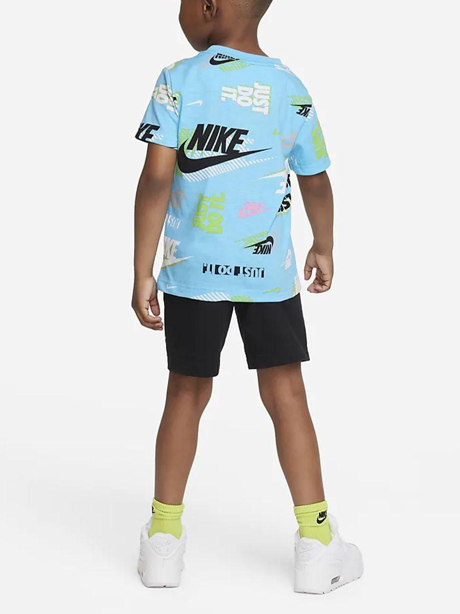 Completo Sportivo composto da t-shirt Manica corta con Stampa Logo All over multicolore e pantaloncino tinta unita con stampa Logo