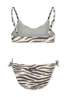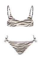 Costume bikini beige in lurex del marchio Mc2 St. Barth rappresenta un capo d'alta moda perfetto per chi cerca eleganza e originalità. Composto da un top con spalline regolabili e slip da bagno il design è impreziosito da un fiocco applicato sui lati degli slip e una stampa zebrata che ricopre l’intera superficie rendendolo unico nel suo genere. Il patch con il logo sul retro aggiunge un tocco distintivo simbolo di qualità e raffinatezza. Realizzato interamente in Italia il bikini unisce estetica e comfort grazie alla sua composizione che mescola viscosa poliestere poliammide ed elastan garantendo un’ottima vestibilità e resistenza.Per preservare la bellezza e la durata del capo è fondamentale seguire alcune semplici indicazioni. Non lavare a secco e non utilizzare l’asciugatrice poiché il tamburo rotativo potrebbe danneggiare il tessuto. Si consiglia di evitare l'uso di candeggina per non compromettere la vivacità dei colori e di scegliere un detersivo delicato sui colori. Quando si stira farlo a una temperatura massima di 110°C evitando il vapore che potrebbe causare danni irreversibili. Le etichette di ogni capo sia online che sugli articoli stessi forniscono informazioni essenziali per una corretta manutenzione assicurando che il prodotto mantenga la sua bellezza nel tempo.Bimbivip prestigioso partner di grandi marchi è il punto di riferimento per l’acquisto di capi Mc2 St. Barth in tutta Europa. Con anni di esperienza nel settore garantisce al cliente la massima soddisfazione offrendo articoli di qualità e un servizio impeccabile. Un vero e proprio punto di riferimento per chi cerca il meglio della moda con un'attenzione particolare alle esigenze di ogni cliente.