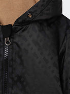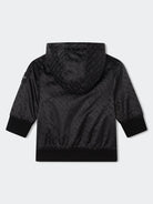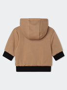 Felpa Tinta unita con Logo All over su tinta. Chiusura totale con Zip. Fondo come i polsi a costine elastiche. Cappuccio non staccabile e patch su tessuto applicata sulla manica