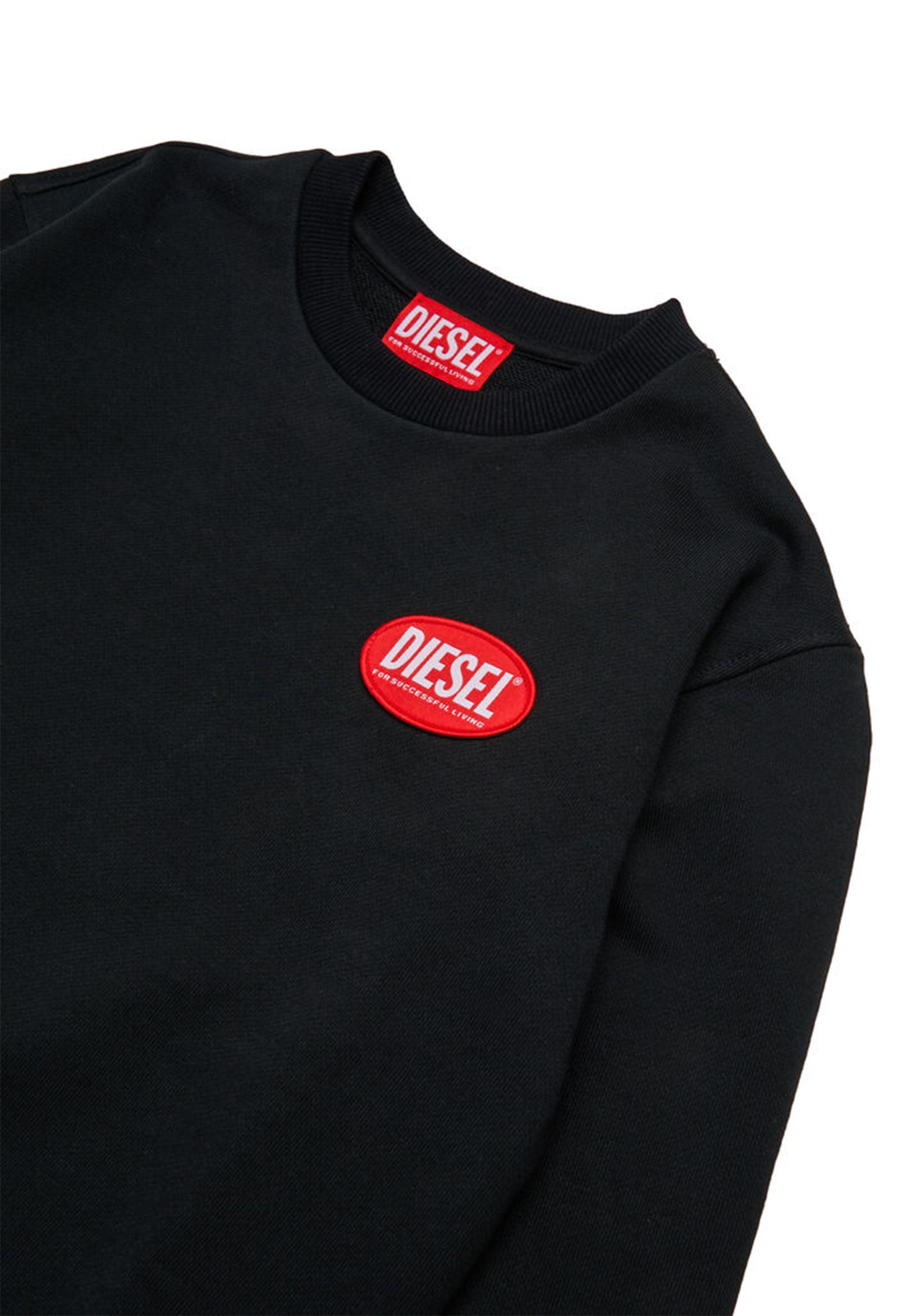 Diesel Felpa Nera Logo Ovale Rosso