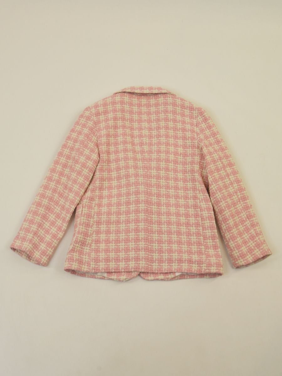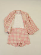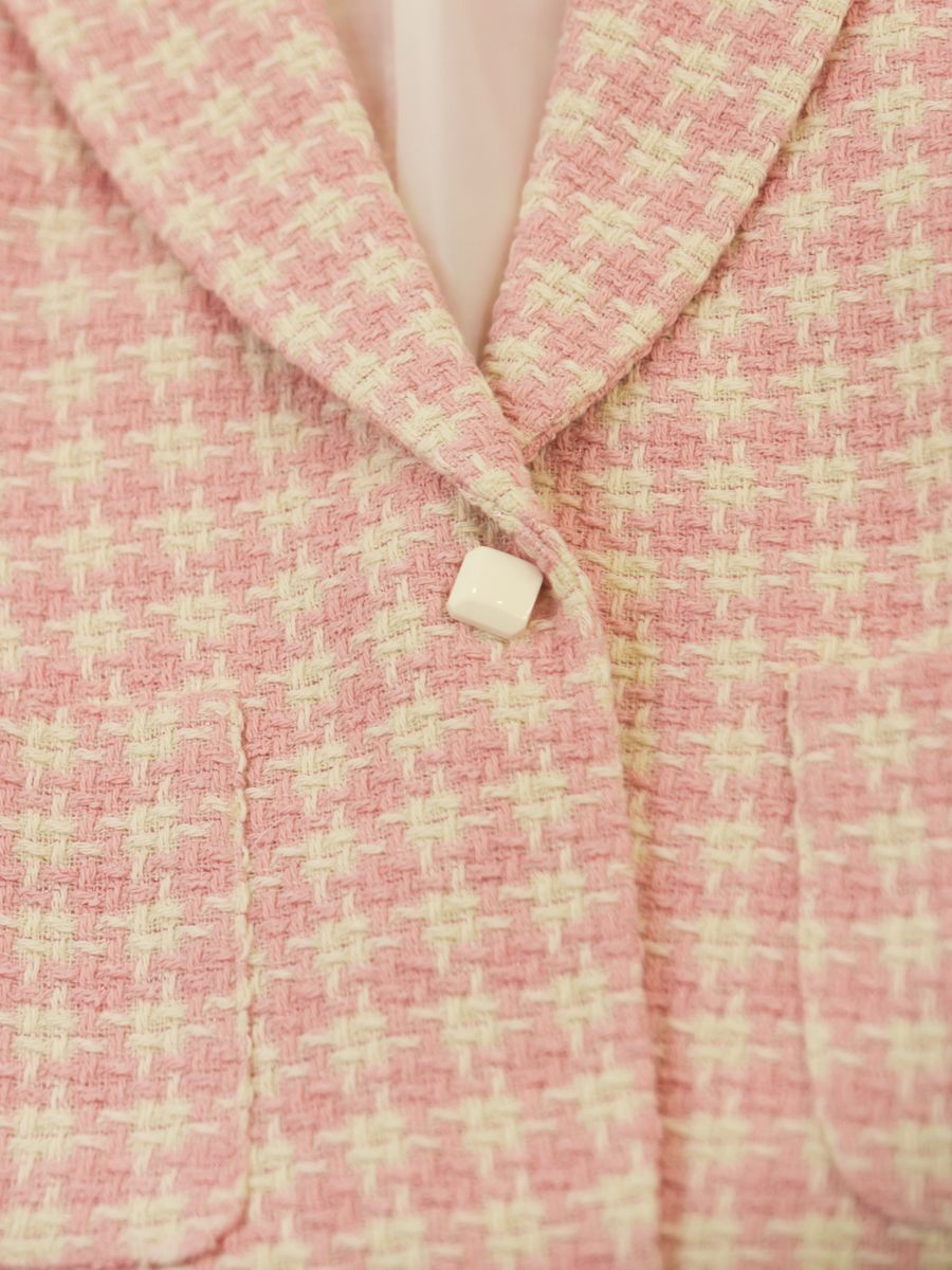 Giacca fantasia con un bottone e tasche frontali sul fondo. Abbinabile con short e altri capi di collezione