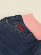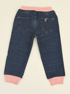 Jeans in morbido cotone denim 5 tasche con costina elastica sul girovita e le caviglie. Comodo per ogni evenienza. Stampa frontale Richmond sulla gamba sinistra