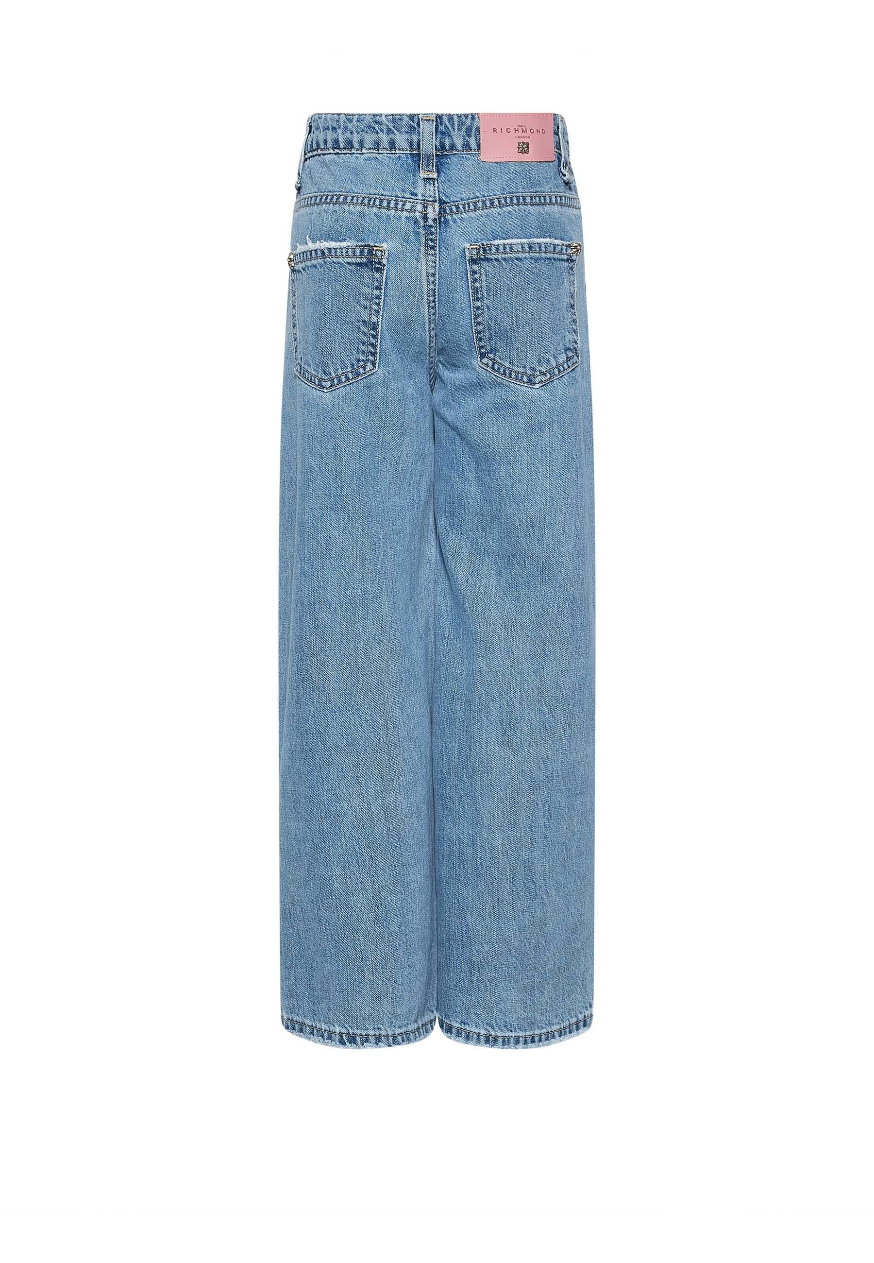 Richmond Jeans Wide Leg Sagone con Borchie Lavaggio Blu