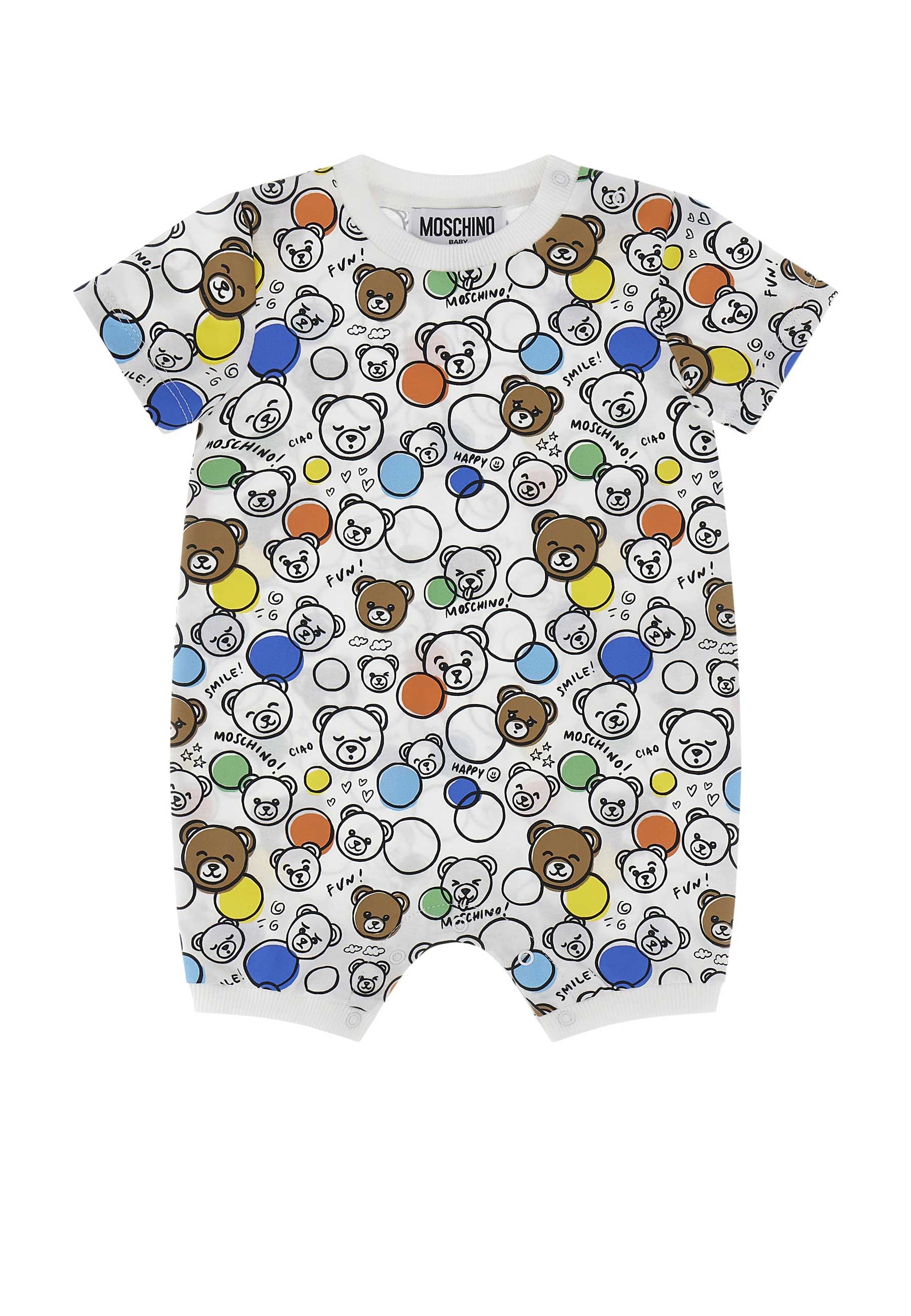 Pagliaccetto Moschino Kids per neonato bianco multicolor un capo iconico vivace e irresistibile perfetto per la stagione primavera estate La stampa all over Teddy Bear con logo Moschino multicolore rende ogni look dinamico allegro e subito riconoscibile Realizzato in morbido cotone assicura comfort traspirabilità e massima libertà di movimento La chiusura a bottoni a pressione su spalla e fondo garantisce praticità e semplicità durante il cambio.Solo da Bimbivip partner storico affidabile e autorevole nel panorama europeo ecommerce e retail punto di riferimento per le famiglie che cercano qualità autenticità e marchi prestigiosi Bimbivip garantisce esperienza d’acquisto sicura trasparente e gratificante con attenzione al cliente cura nella selezione e garanzia di originalità Nessun falso solo prodotti genuini controllati dai nostri specialisti per uno shopping sereno e di valore Scegli in modo affidabile scegli Bimbivip