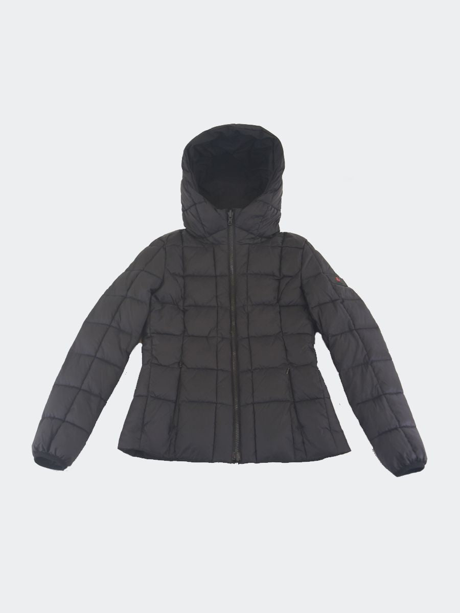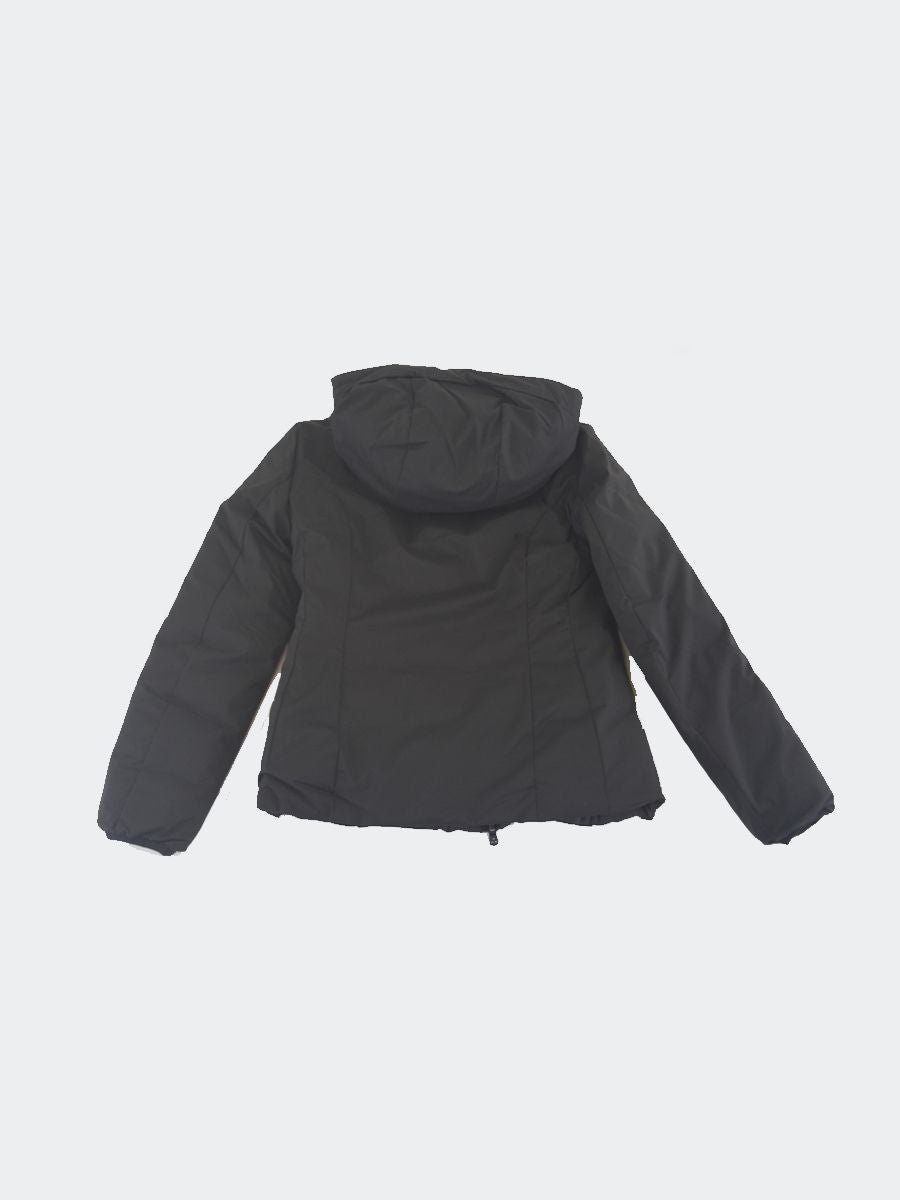 Piumino reversibile in nylon con Cappuccio fisso. Elastico su bordo cappuccio e polsini e tasca laterale con zip invisibile. Imbottito trapuntato con interno liscio e tasche zip invisibili