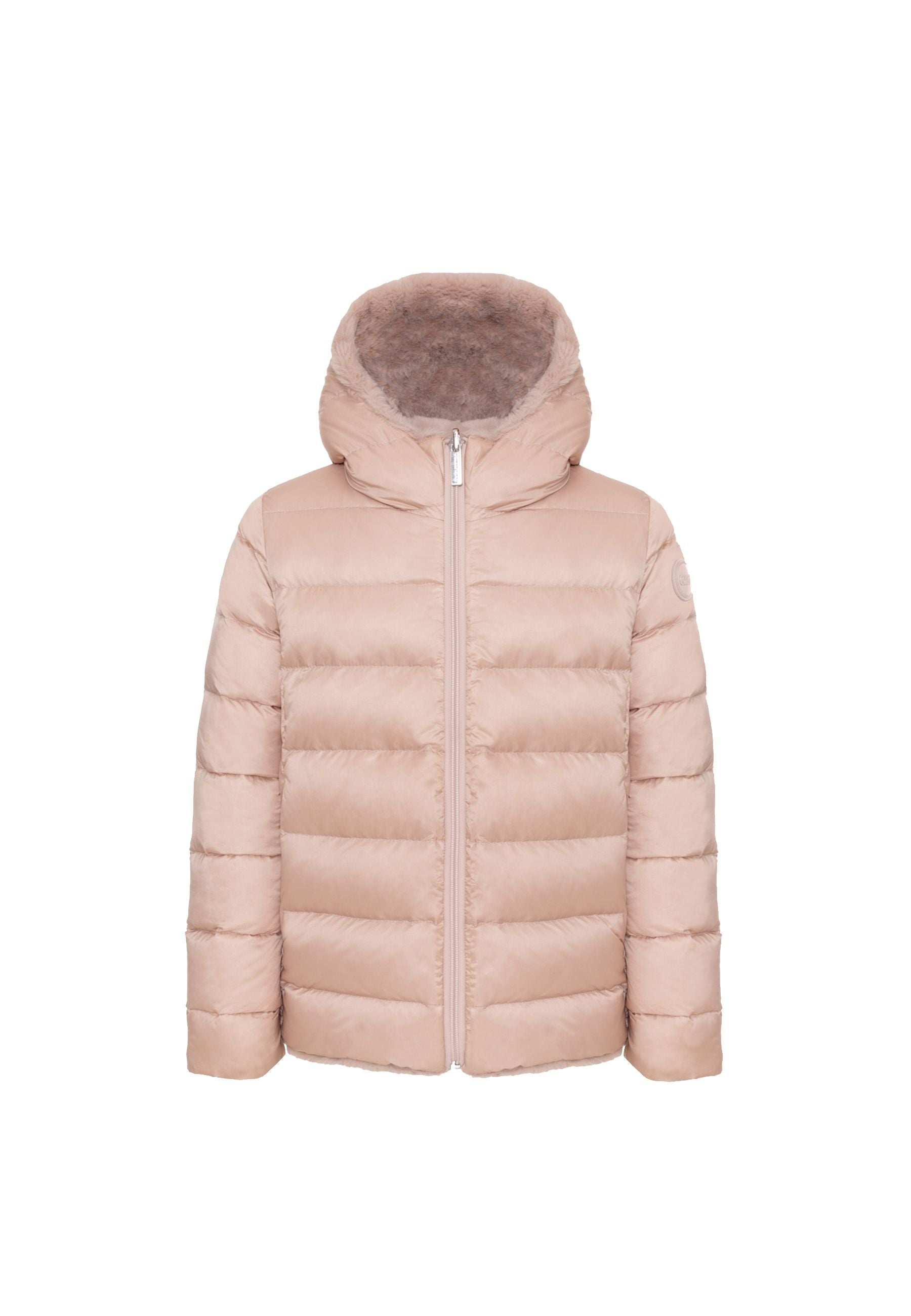 Piumino reversibile con cappuccio da bambina realizzata in morbida pelliccia sintetica da un lato e in tessuto poliammidico riciclato dall'effetto cangiante nei toni scuri dall'altro due capi in uno per un look sportivo o glamour imbottitura in piuma naturale patch Colmar sulla manica sinistra esclusiva distribuzione Bimbivip partner storico affidabile e riconosciuto nel panorama europeo e-commerce e retail punto di riferimento per famiglie alla ricerca di qualità originalità e garanzia di marchi prestigiosi esperienza d’acquisto sicura soddisfacente e appagante