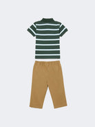 Set Regalo Set Polo manica corta Rigata con Ricamo Coccodrillo e pantalone lungo tinta unita cordinato in Piquè.