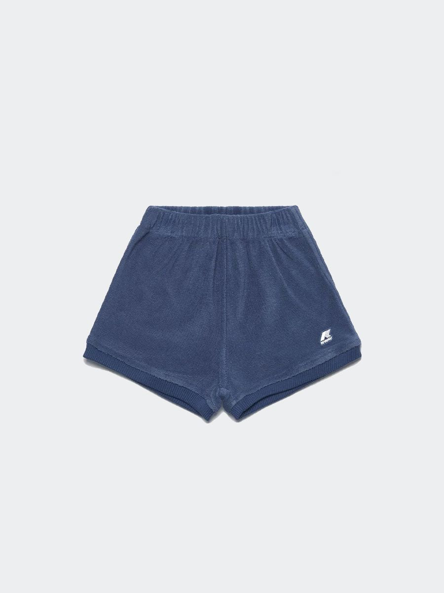 Shorts realizzato in cotone spugna un elemento essenziale nell'abbigliamento quotidiano. Questi shorts garantiscono il massimo comfort e consentono piena libertà di movimento grazie alla loro vestibilità regolare arricchita da un inserto elastico colorato che contraddistingue la vita. L'emblema bianco K-Way funge da segno distintivo per il marchio. Il tessuto di cotone spugna e la fascia elastica in vita assicurano un fitting regolare mentre il logo in silicone bianco aggiunge un tocco distintivo