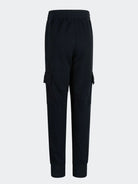 Sottotuta modello cargo in cotone garzato con doppia tascona laterale con strep. Coulisse in vita e elastici alle caviglie.