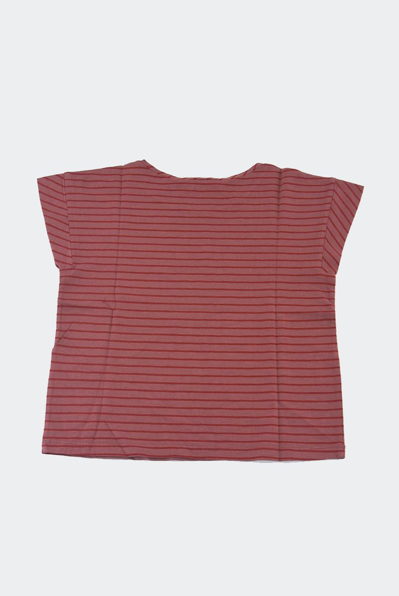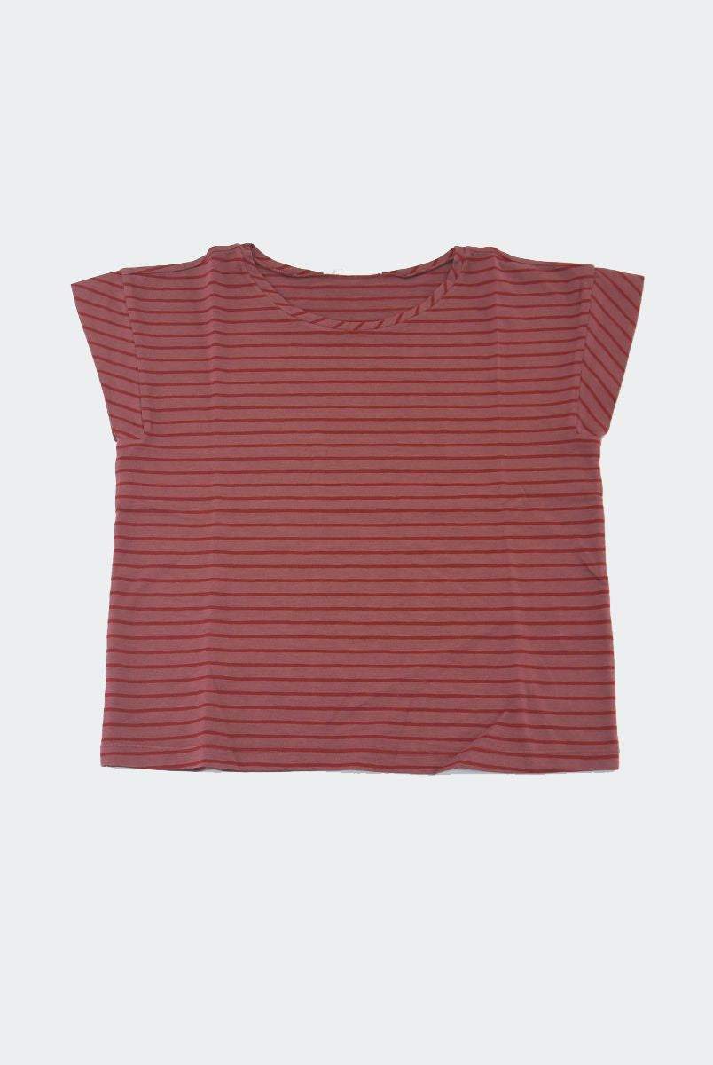 T-shirt modello a manica corta con volant intorno al colletto. Scritta stampata frontale e chiusura con bottoncino sul retro. sottoposto ad un particolare trattamento. Le tinture artigianali rendono l'articolo unico. Ogni particolarità dei tessuti di Zhoe e Tobiah è da ritenersi un valore aggiunto per rendere unico il bimbo o la bimba che lo indossa