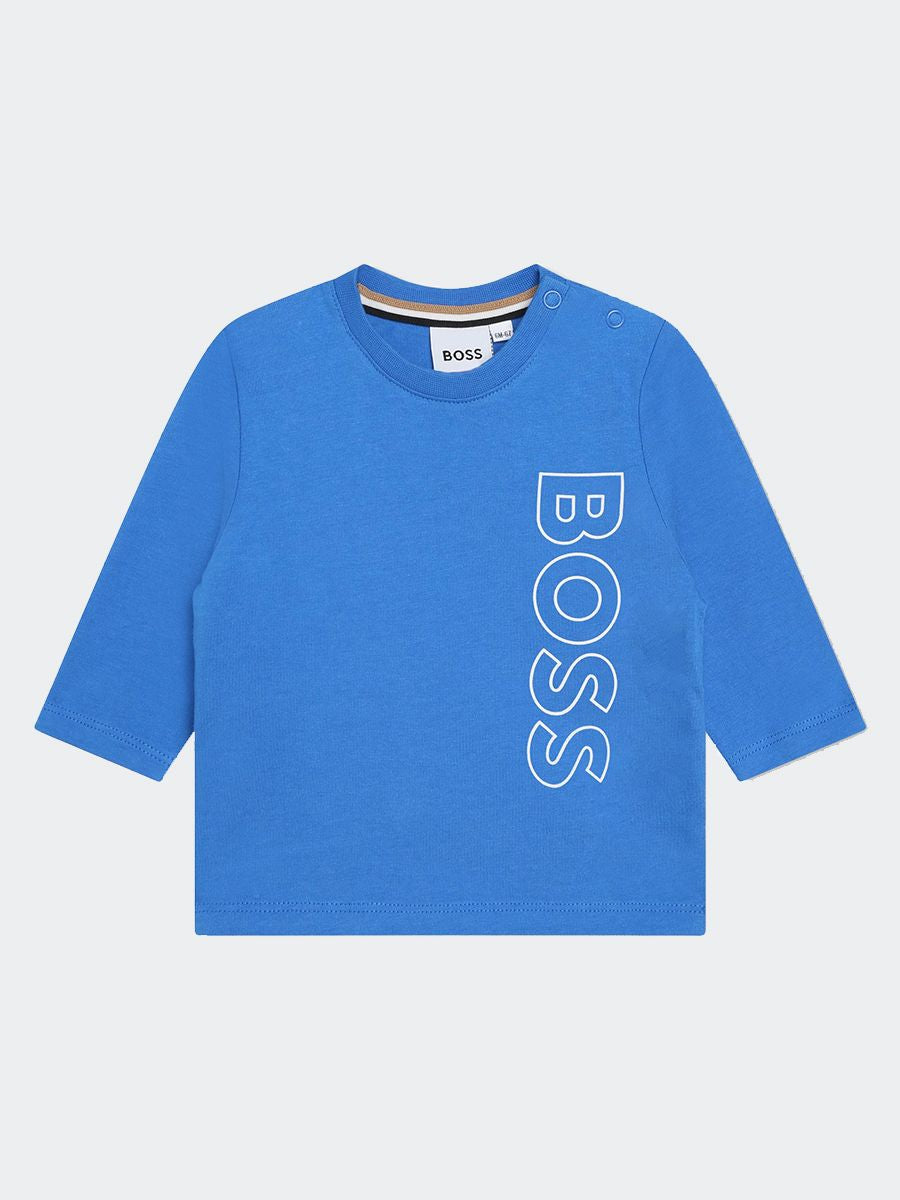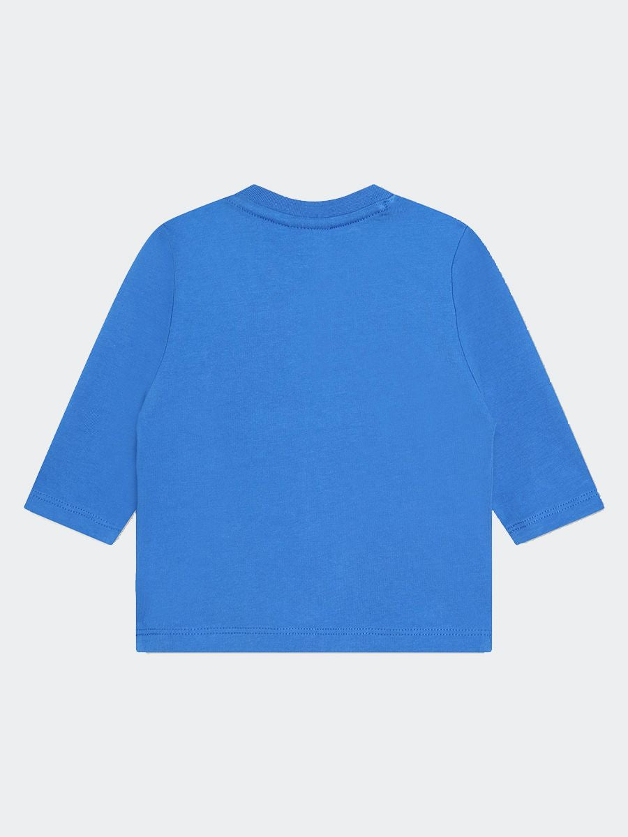 T-shirt tinta unita girocollo manica lunga. Stampa frontale con Logo verticale. Bottoni sulla spalla per facilitare la vestibilità